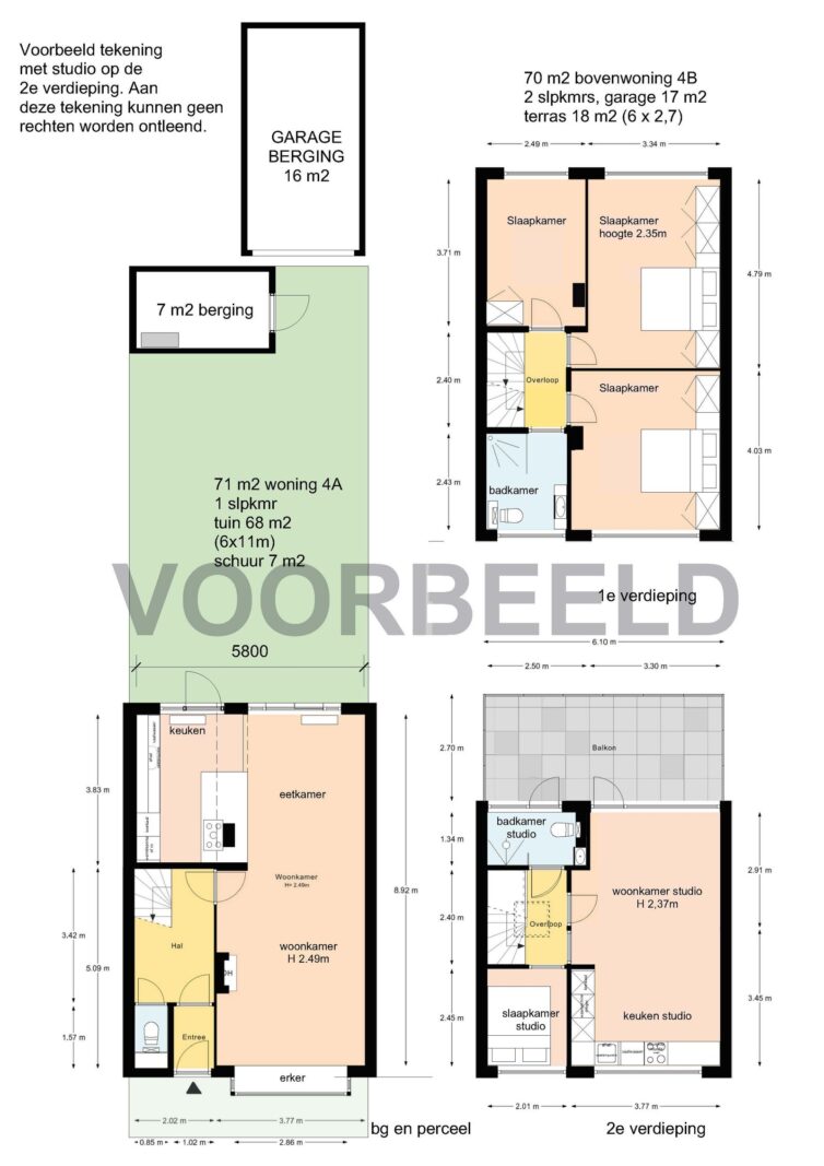 Het huis is zo ruim dat het veel mogelijkheden biedt. Tussen de foto’s vind je voorbeeldplattegronden voor splitsing en het maken van een studio op de 2e verdieping met eigen keuken en badkamer voor bijvoorbeeld een studerend kind.