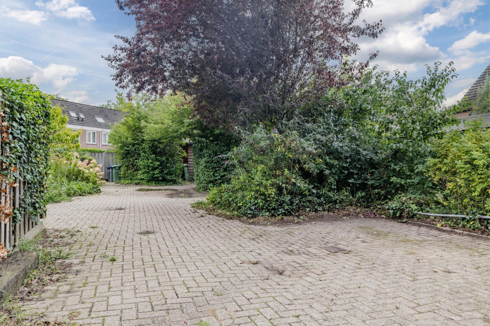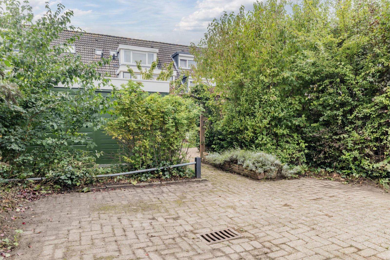 •Achtertuin van ca. 67 m², gelegen op het zuidoosten, voorzien van sierbestrating, gazon, bomen en borders, achterom en schutting.