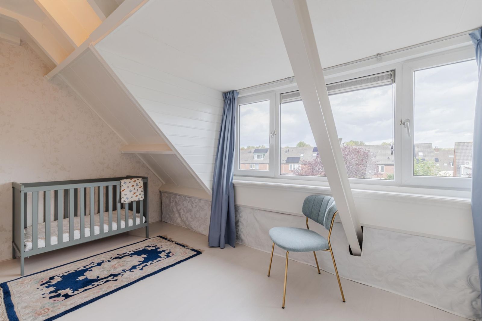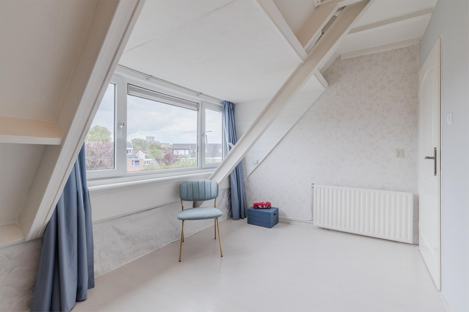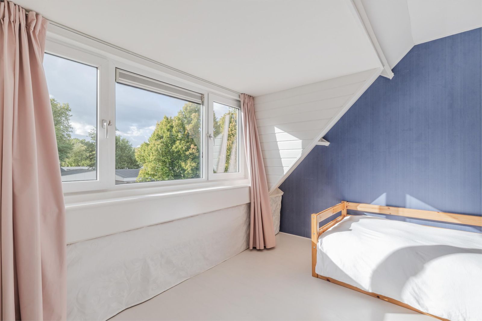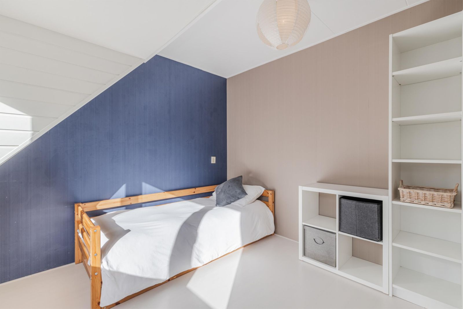 •Handige opbergruimtes onder het schuine dak, afgeschermd met gordijntjes.