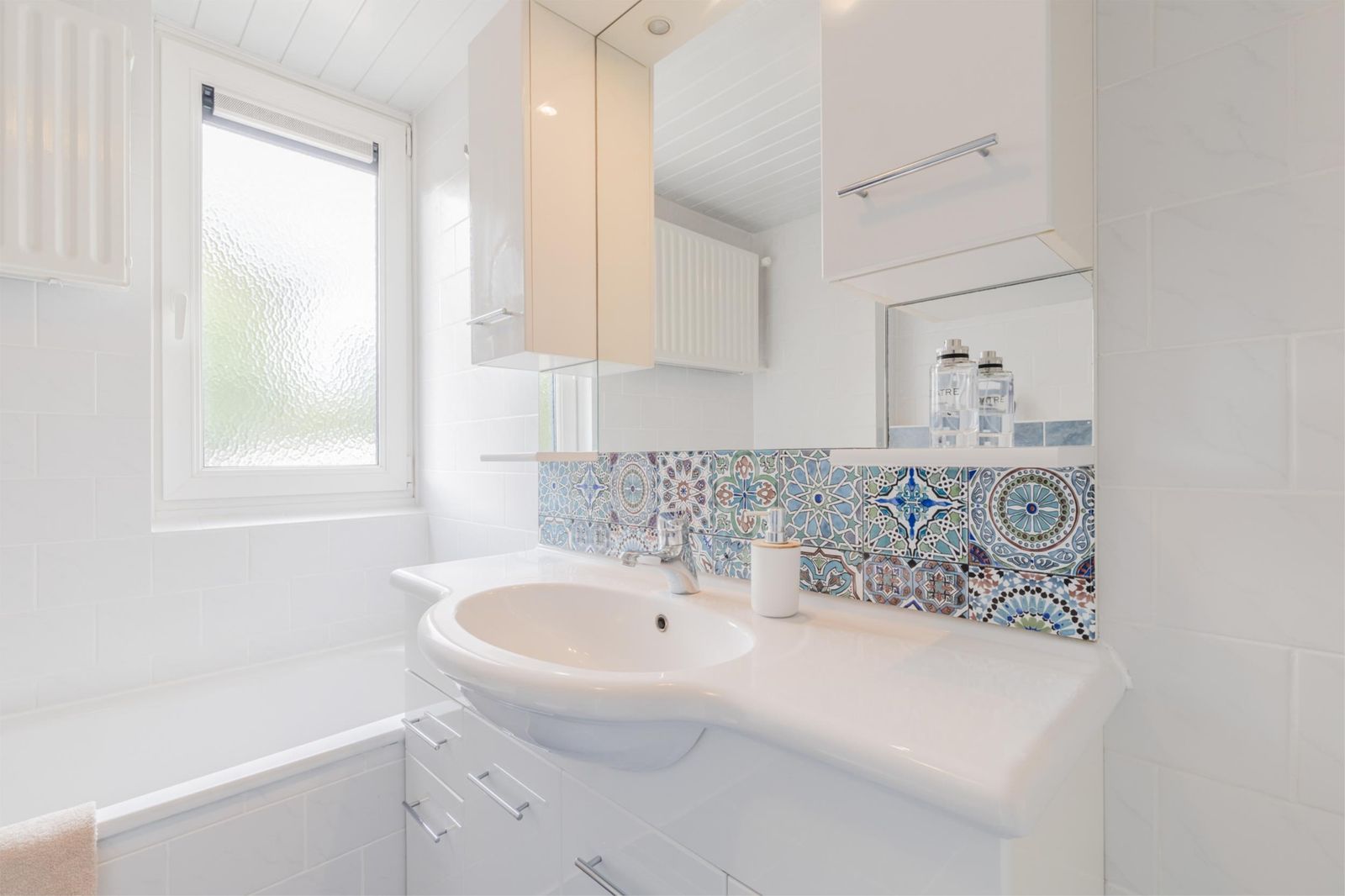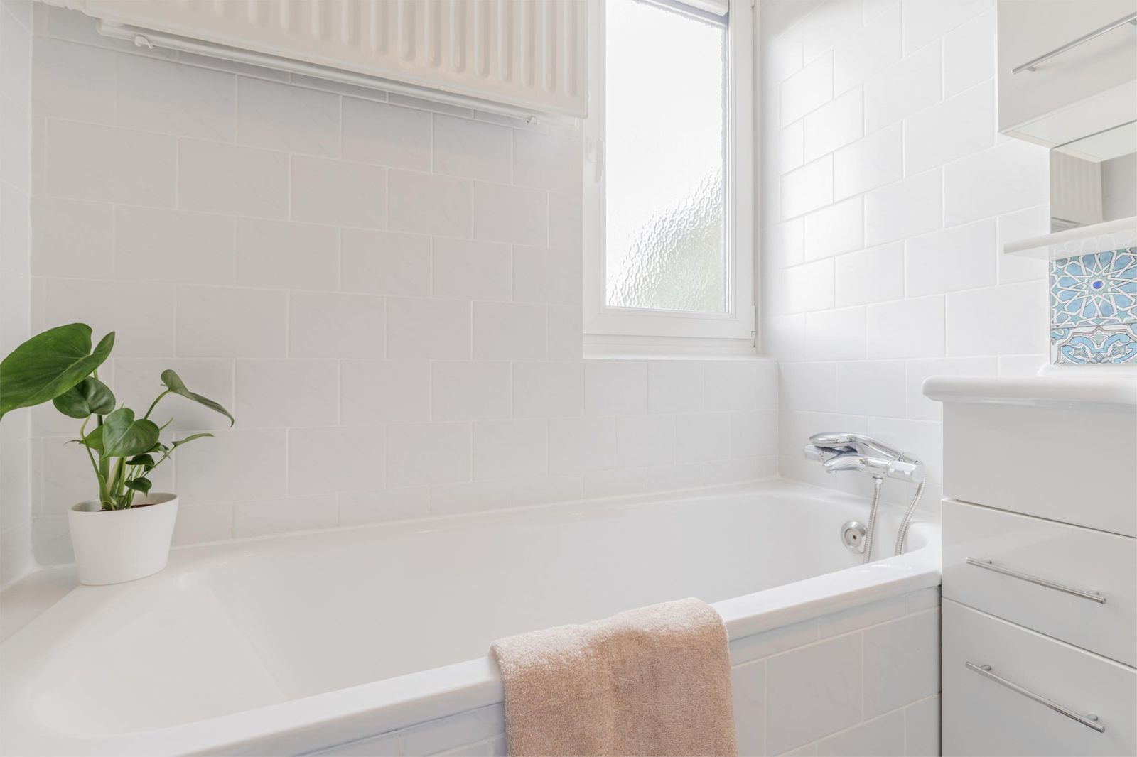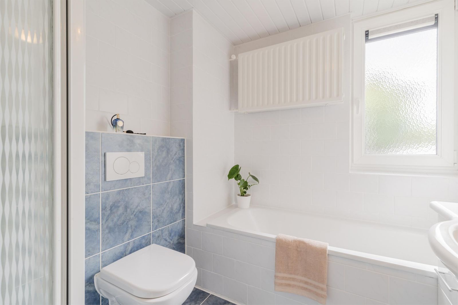 •Well-kept bathroom (2010) with bathtub, shower, second toilet, washbasin, mirrored cabinet with lighting, radiator and window for natural light/ventilation.