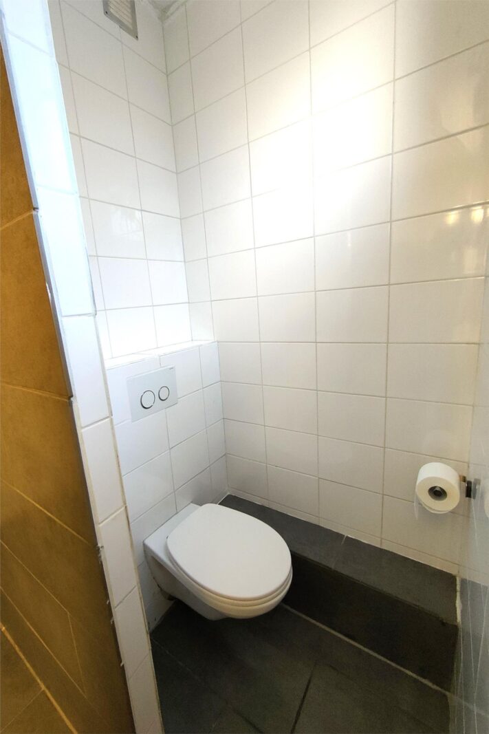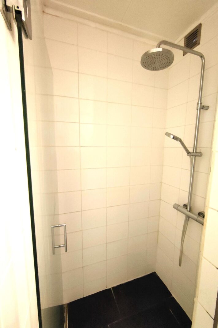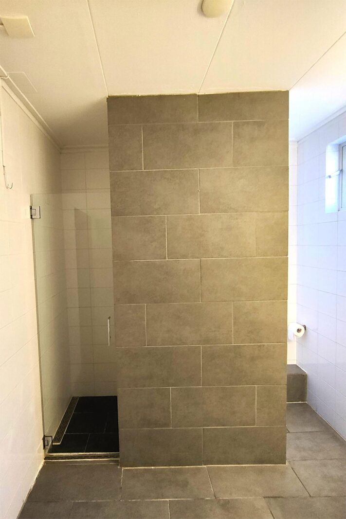 De woning beschikt over een ruime, moderne badkamer (ca. 8 m2) met een dubbele wastafel, douche, toilet en een moderne radiator.