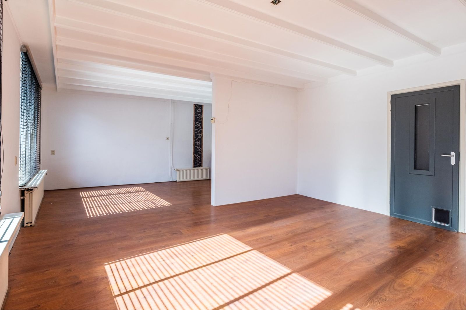 De lichte woonkamer met open keuken (totaal ca. 38m2) valt op door de grote raampartijen aan de voorzijde, die zorgen voor een mooie en prettige lichtinval. Deze ramen zijn voorzien van moderne zonwering.