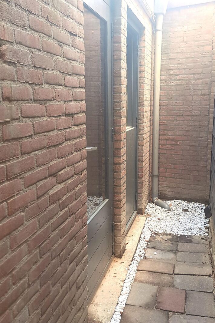 Via een gemeenschappelijk portaal, waar de (nieuwe) meterkast zich bevindt, gaat de trap naar de 1e verdieping.