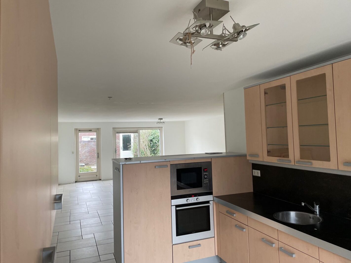 Entree/hal met de meterkast, toilet en toegang tot enorme living met aan de voorzijde gelegen de keuken. Door de verdiepingshoge ramen heeft u hier veel daglicht. Deinbouwkeuken in L-opstelling (met extra kastenwand en eetbar) is voorzien van alle wenselijke inbouwapparatuur w.o. koel-/vriescombinatie, vaatwasser, magnetron, afzonderlijke oven, 90 cm brede keramische kookplaat en een rvs- afzuigschouw. De woonkamer is tijdens de bouw aan de achterzijde uitgebouwd waardoor een zee van ruimte is ontstaan. Door de grote schuif pui en de tuindeur heeft u hier veel licht en zicht op de groene achtertuin.