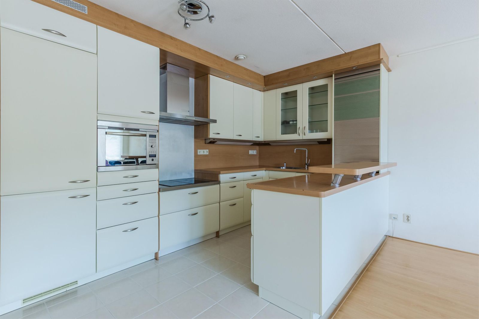 -Woonkamer (37m²) met open keuken voorzien van inbouwapparatuur (koelvriescombinatie, oven/magnetron, inductiekookplaten, vaatwasmachine, afzuigkap)