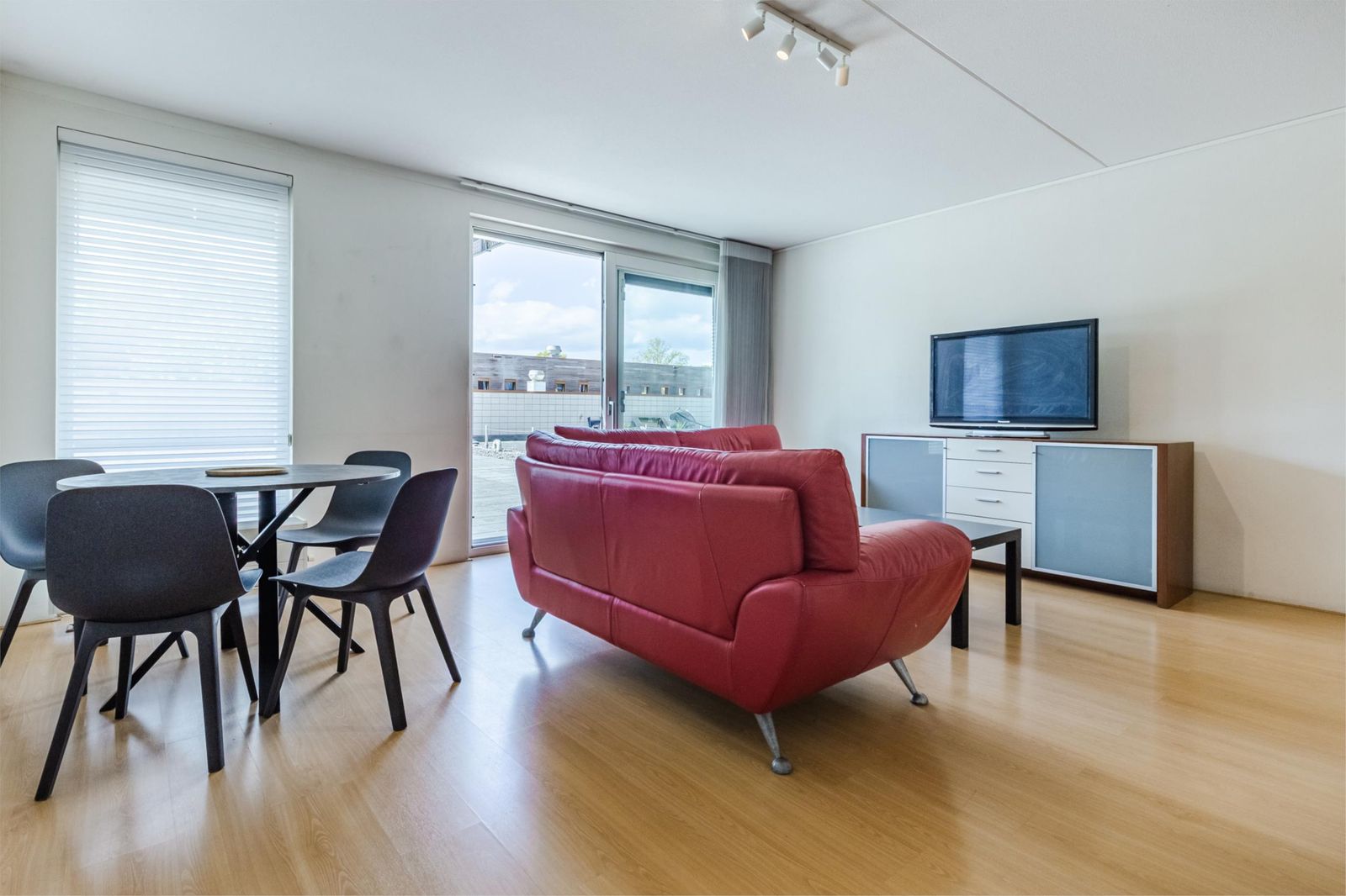 -Terras te bereiken via schuifpui woonkamer of via (zij)kamers (10,4m² en 17,4m²).