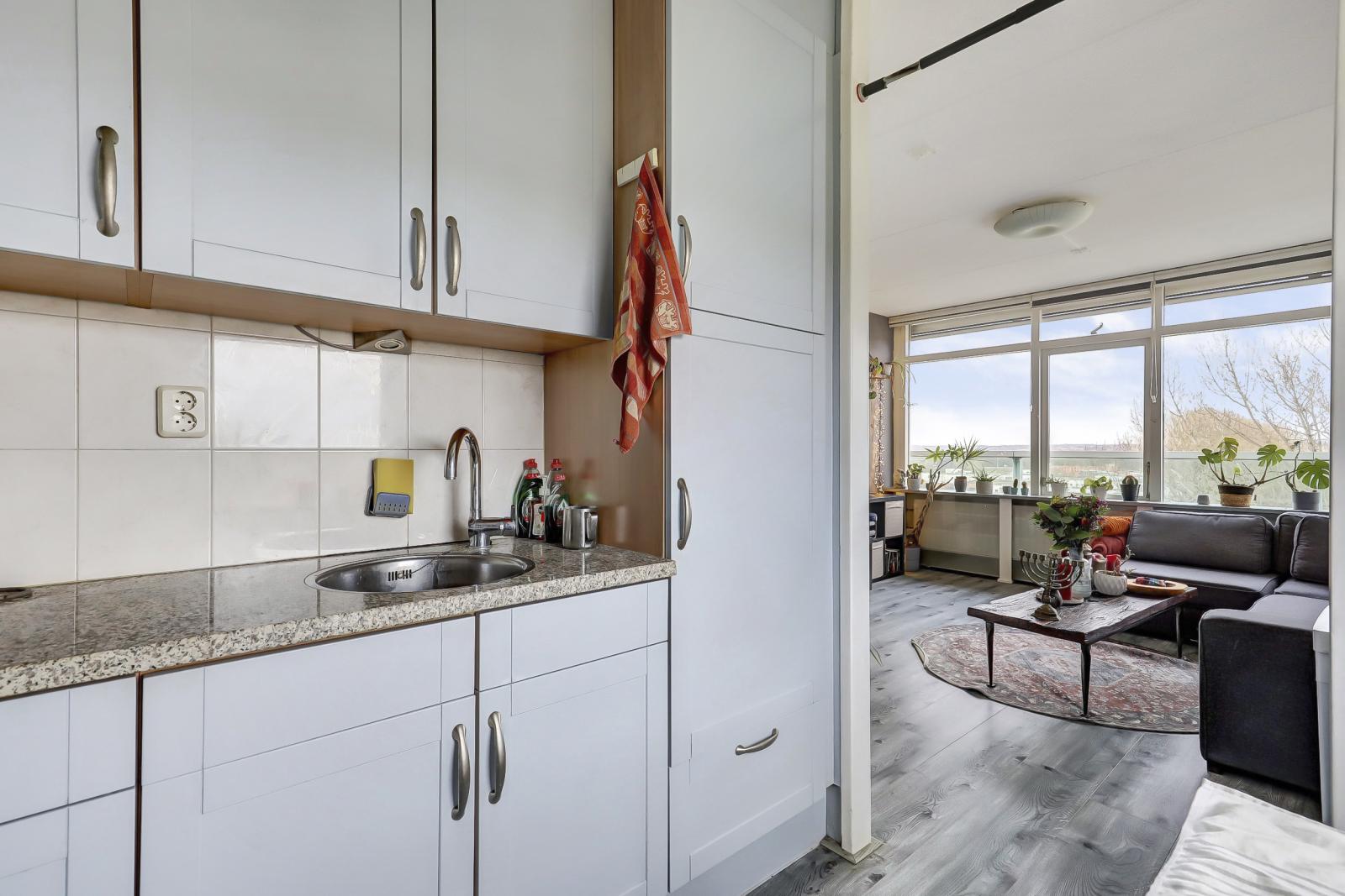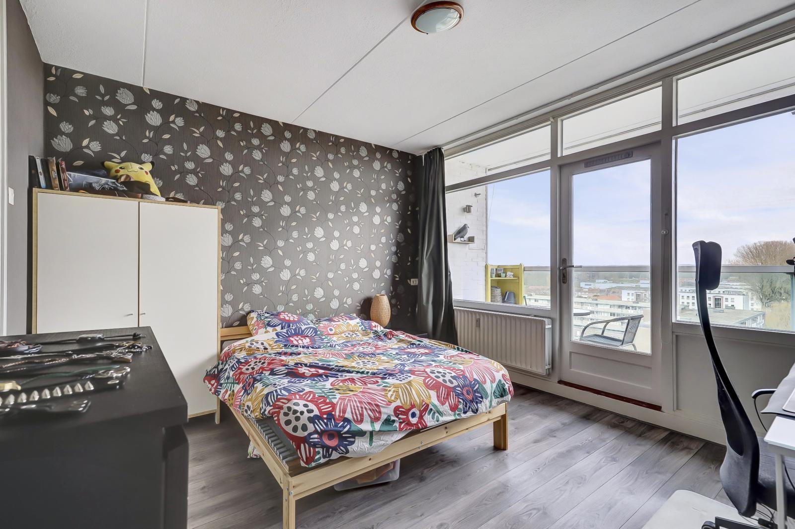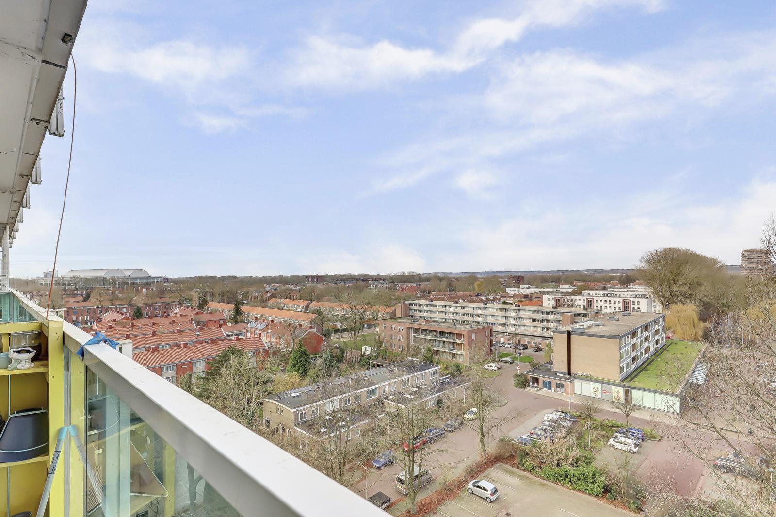 Het uitzicht vanaf de 8e verdieping is geweldig; weids, ver en groen. Van binnen is alles keurig en goed onderhouden. Het appartement is gelegen op een hoek en heeft een lichte woonkamer, inbouwkeuken, ruime slaapkamer en comfortabele badkamer. De locatie tenslotte is ook prima: je woont hier voor een aantrekkelijke prijs op nog geen tien minuten fietsen van het stadscentrum, met alle voorzieningen in de buurt. Hebben de tekst en de foto's uw interesse gewekt? Maak dan een vrijblijvende afspraak met ons kantoor. U bent van harte welkom!