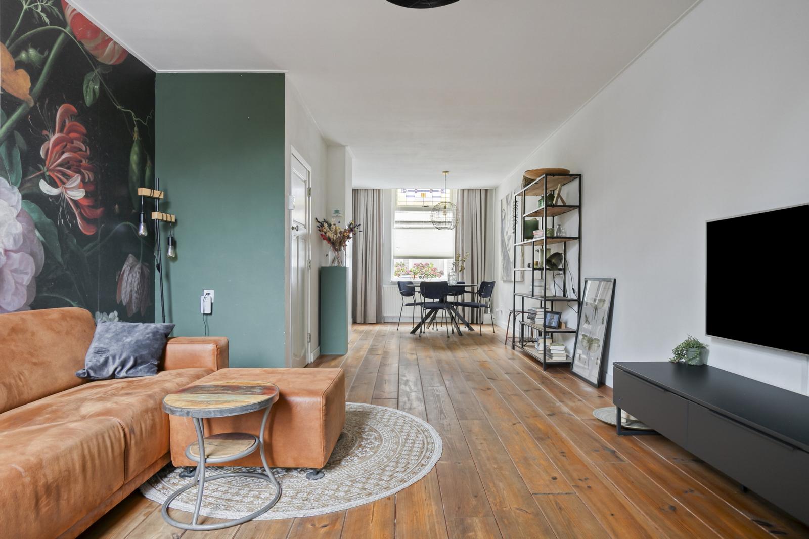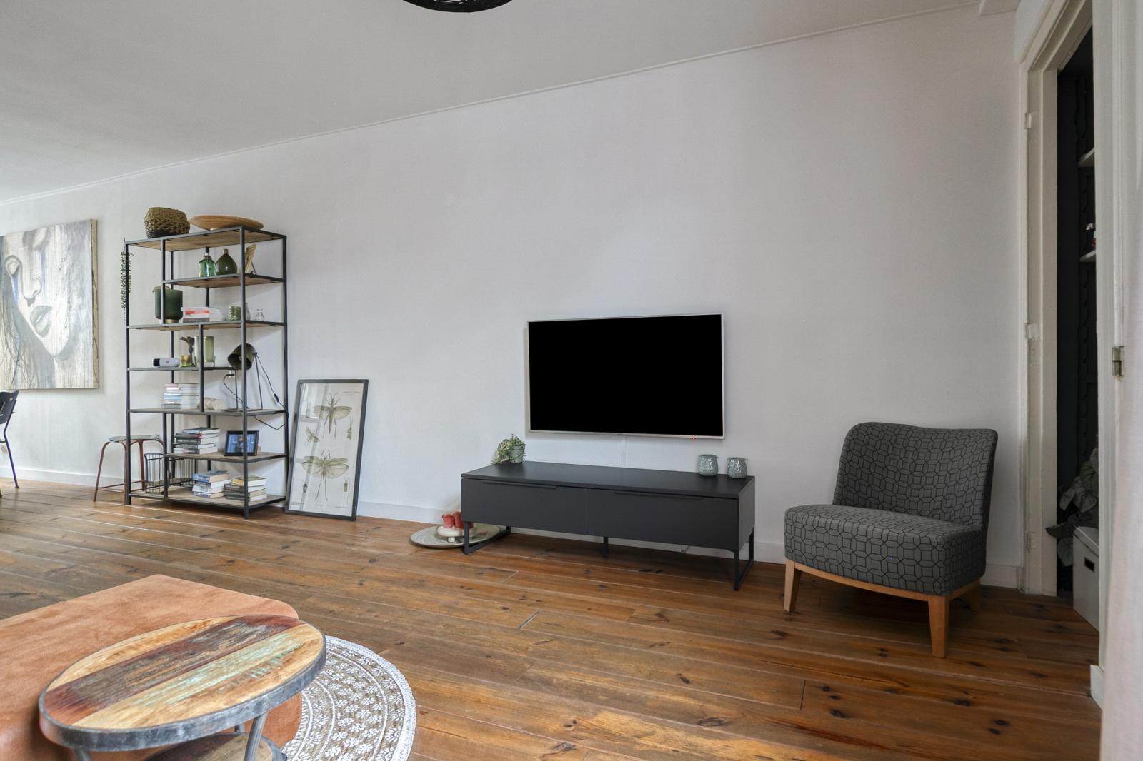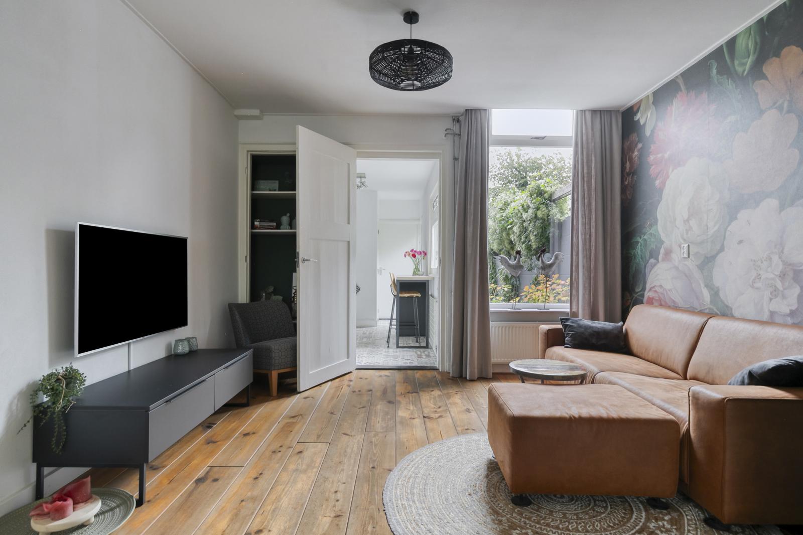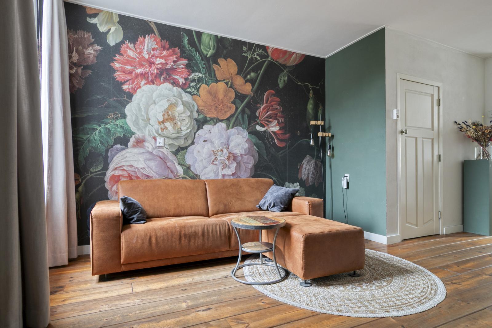 De hal met lambrisering zet de toon: verzorgd, authentiek, uitnodigend. In de woonkamer valt het licht royaal naar binnen; de houten vloer loopt mooi door en de paneeldeuren geven elke hoek karakter. Er is plek voor een lange eettafel én een knusse zithoek. Onder de trap zit een slimme bergkast voor alles wat je uit zicht wilt houden.