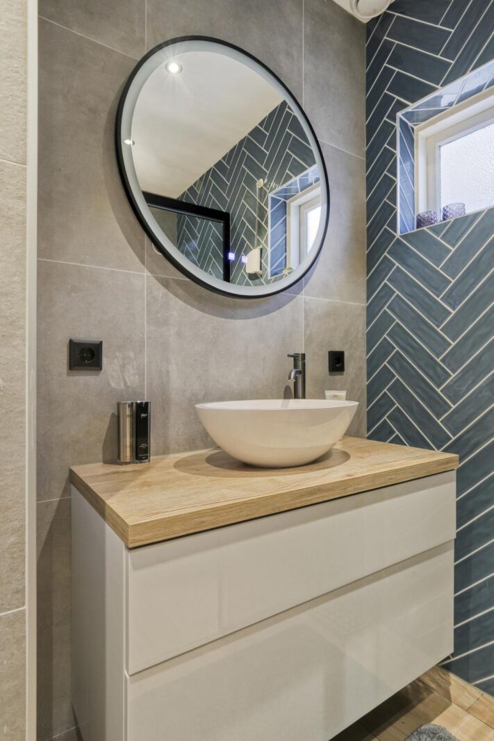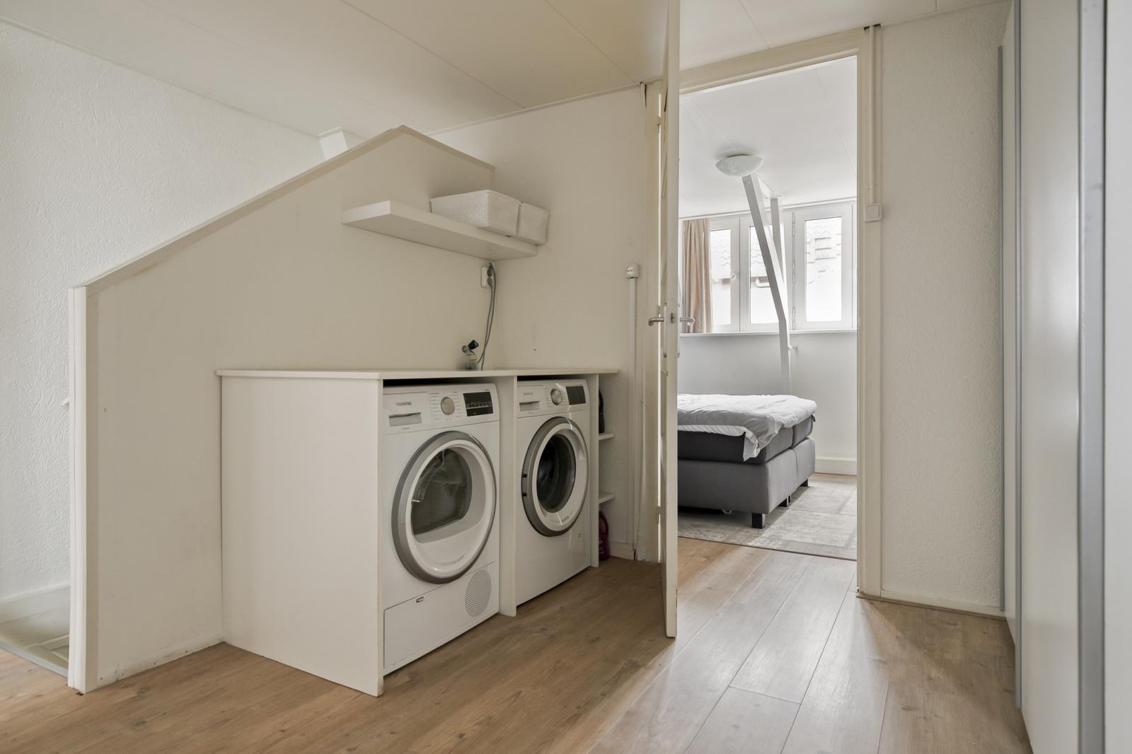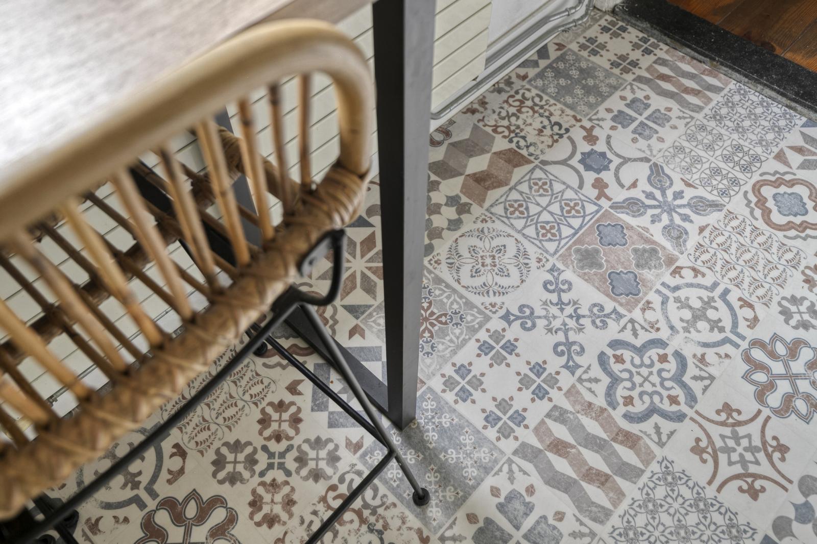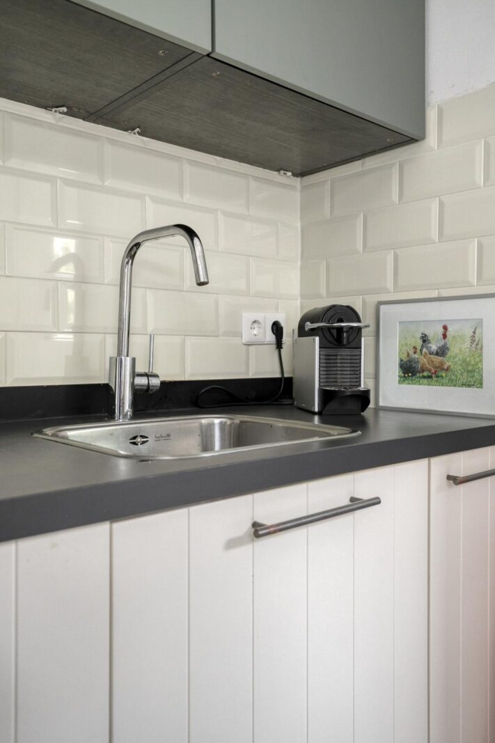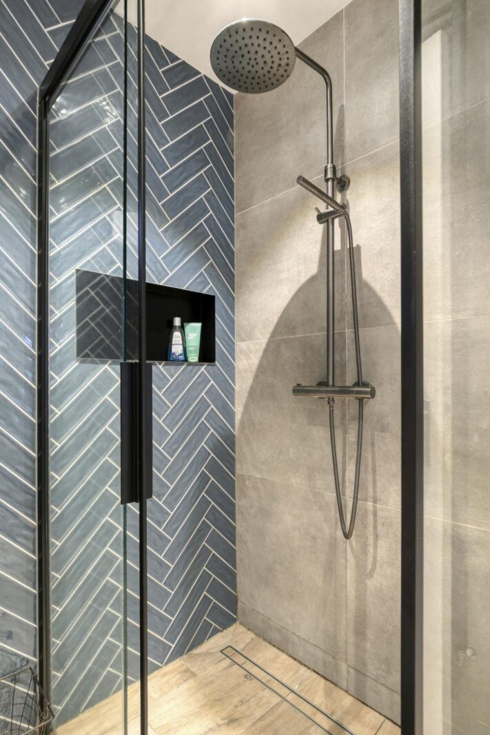 Achter de living ligt de complete keuken. Praktisch ingedeeld, compleet uitgerust (combi-oven, vaatwasser, koel-vries en 4-pits kookplaat met RVS-kap) en met een groot raam waar het daglicht zacht binnenvalt. De speelse vloertegels geven het geheel een frisse look. Aansluitend vind je een recentelijk vernieuwd modern toilet en een strak afgewerkte badkamer met inloopdouche en wastafelmeubel _ ideaal na een run door het park of een lange werkdag.