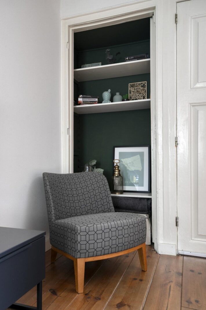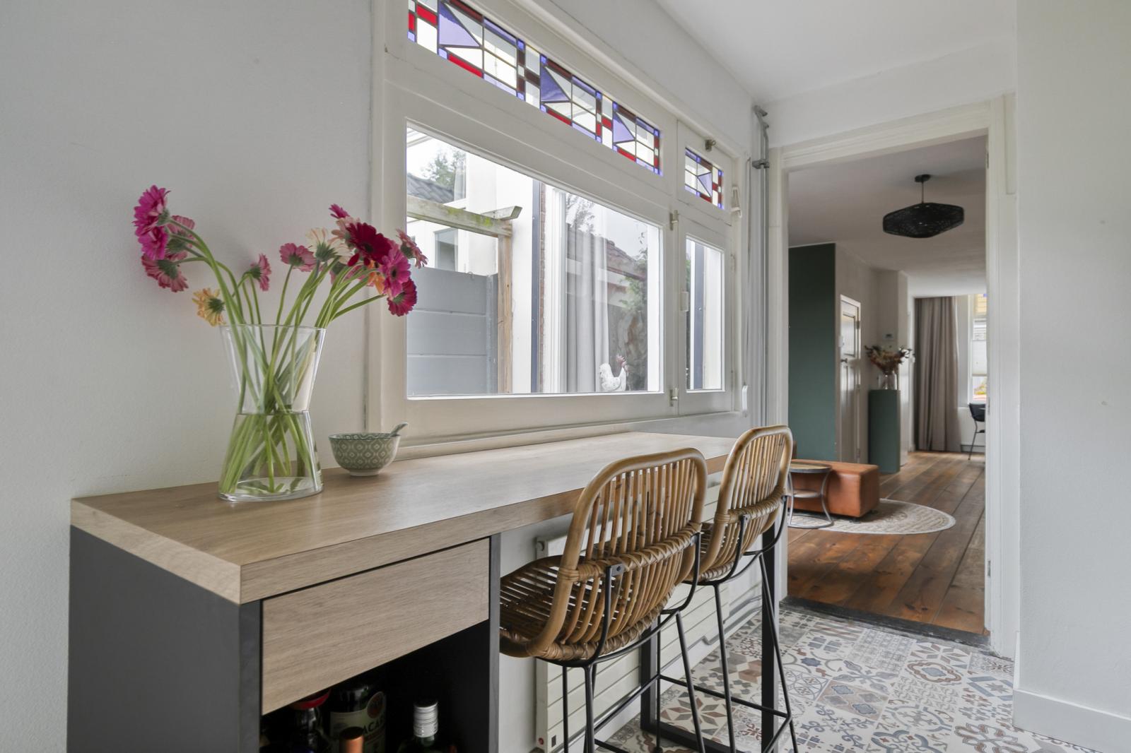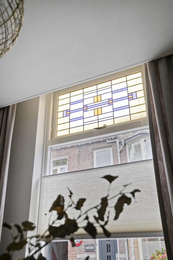 Je zet je fiets neer in een rustige straat, hoort het geruis van bomen en stapt binnen in een huis dat meteen goed voelt. Originele details, warm hout, glas-in-lood dat het daglicht filtert: dit is zo'n vooroorlogse woning die je niet vaak tegenkomt. Alles klopt hier _ de sfeer, de indeling, de ligging _ precies tussen luwte en levendigheid in.
