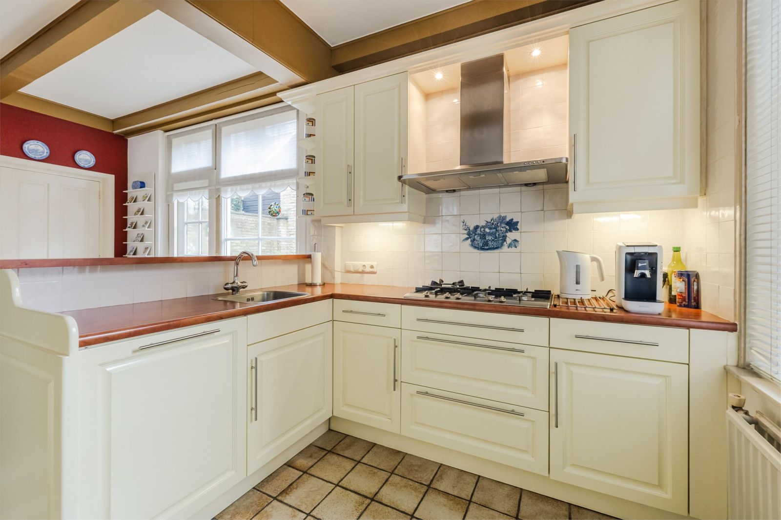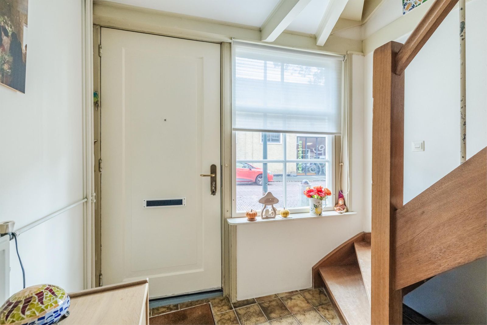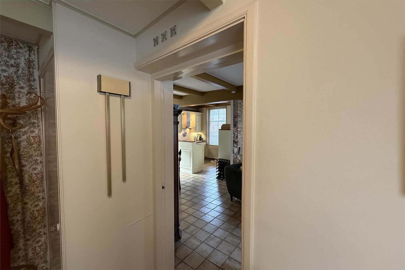 -entree hal, apart toilet, meterkast en toegang tot de woonkamer. Trapopgang naar de eerste verdieping. Zonnige, ruime woonkamer met balkenplafond en een door een scheepstimmerman gebouwde open keuken. De keuken is voorzien van een ingebouwde koel- en vrieskast en combimagnetron, alsook een aansluiting voor een vaatwasser. Horeca-afzuiginstallatie boven het 5-pits gasstel. De keuken is afgewerkt met handgemaakte tegels, alsook met een Fries tegeltableau.