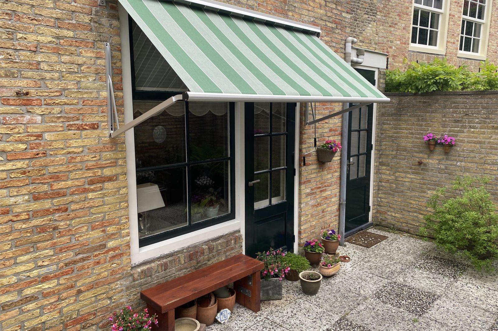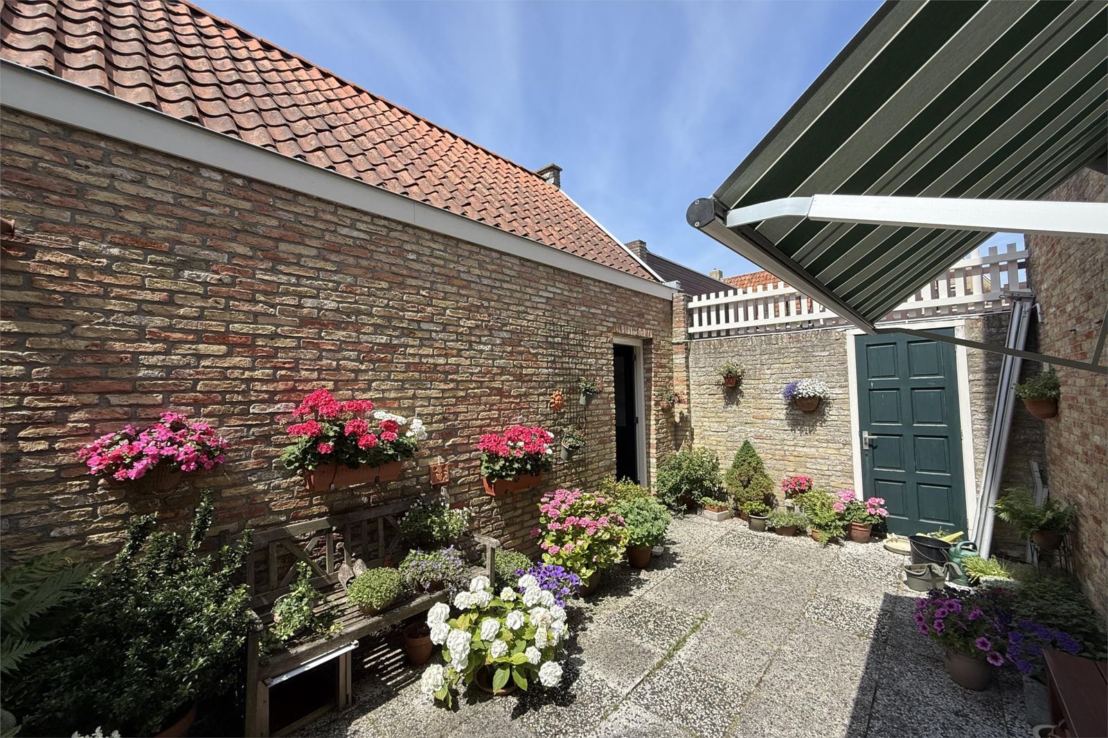 De zonnige binnenplaats, te bereiken via de bijkeuken, is gelegen tussen het woonhuis en de vroegere garage. In voorjaar, zomer en najaar zorgen de vele potplanten voor een heerlijke, beschutte plek, wég van stads gedruis.