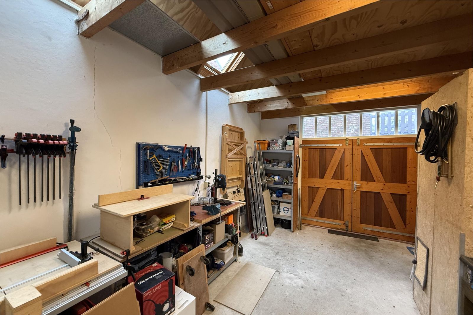De voormalige garage herbergde medio vorige eeuw tot vier auto’s. maar kreeg in 2004, na intensieve verbouwing, een nieuwe bestemming als verblijfsruimte voor multifunctioneel gebruik. Dit is een bijzondere ruimte met een aparte ingang in de aangrenzende Pothondjessteeg. Alles is vernieuwd: nieuw dak, vloer van gewapend beton, gestucte binnenwanden, kozijnen, deuren en ramen, + directe toegang tot een tweede binnenplaats. De dakpannen zijn, op verzoek van de gemeente Harlingen, in stijl met die van de woning, de verblijfsruimte heeft een driekwart zolderruimte, niet alleen voor opslag… óók voor lichtdoorlating!