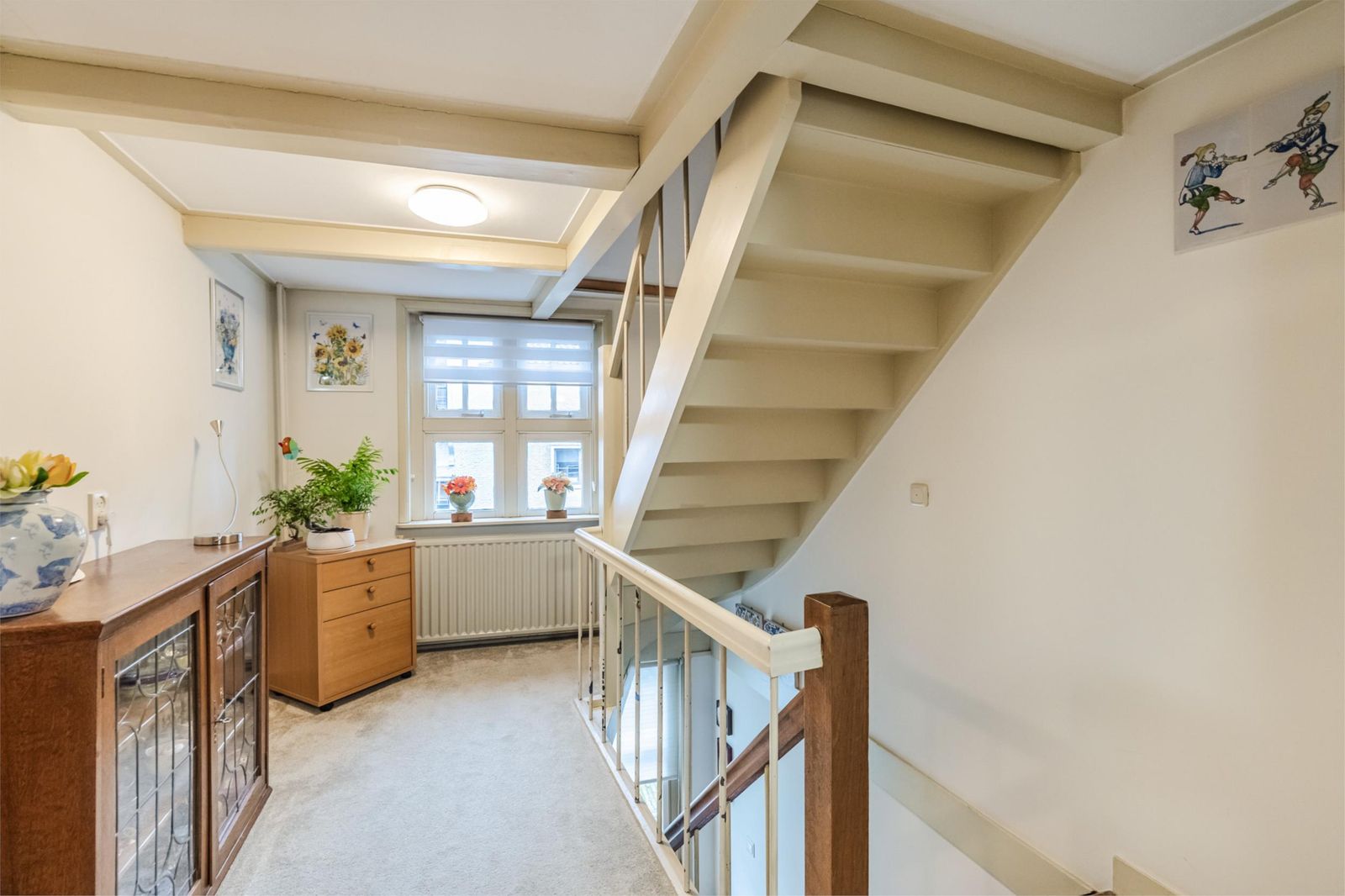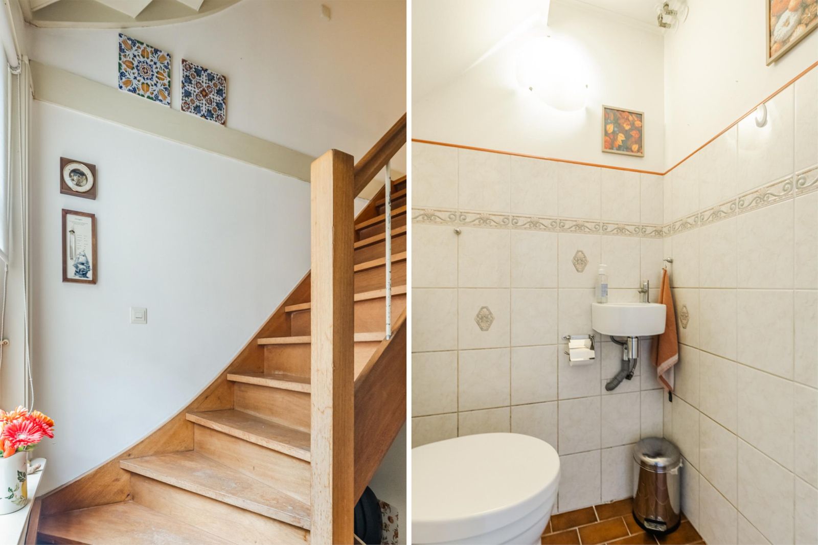 -vanuit de hal: opgang naar eerste verdieping met charmante, warme overloop, drie ruime slaapkamers en een badkamer met bad, wastafel en tweede toilet. Verdere gegevens: zie de tekeningen.