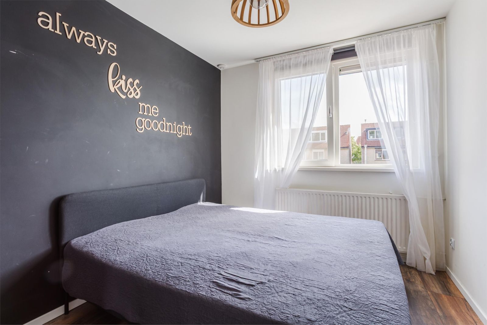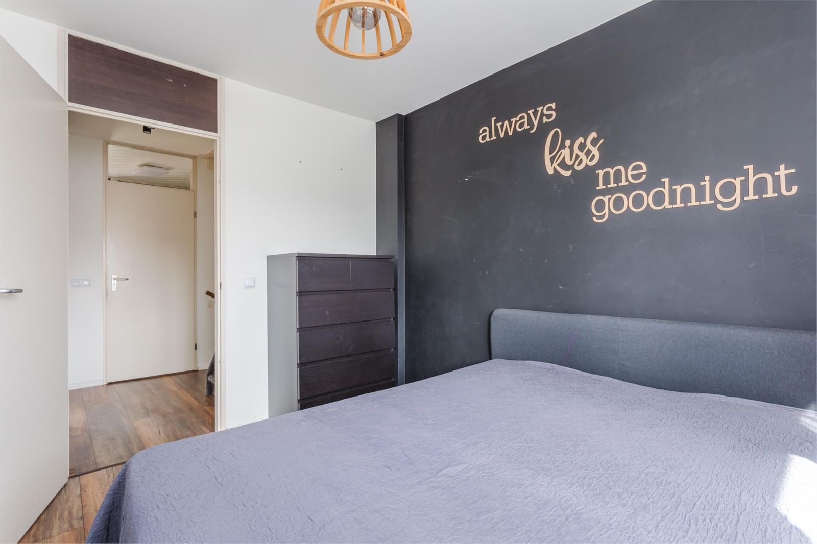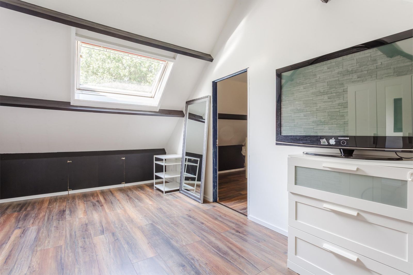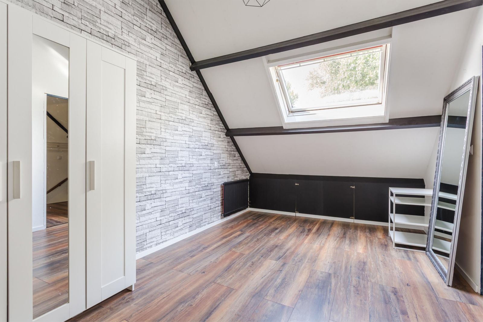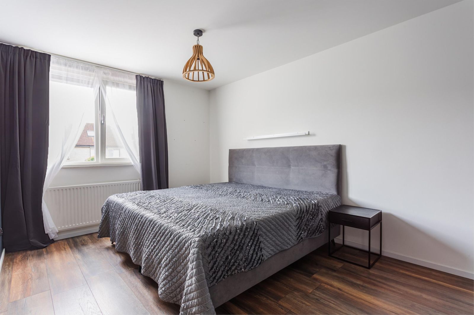 Via een vaste trap bereik je de ruime vierde slaapkamer. Hier bevinden zich ook de cv-installatie, aansluiting voor de wasmachine en de mechanische ventilatie.