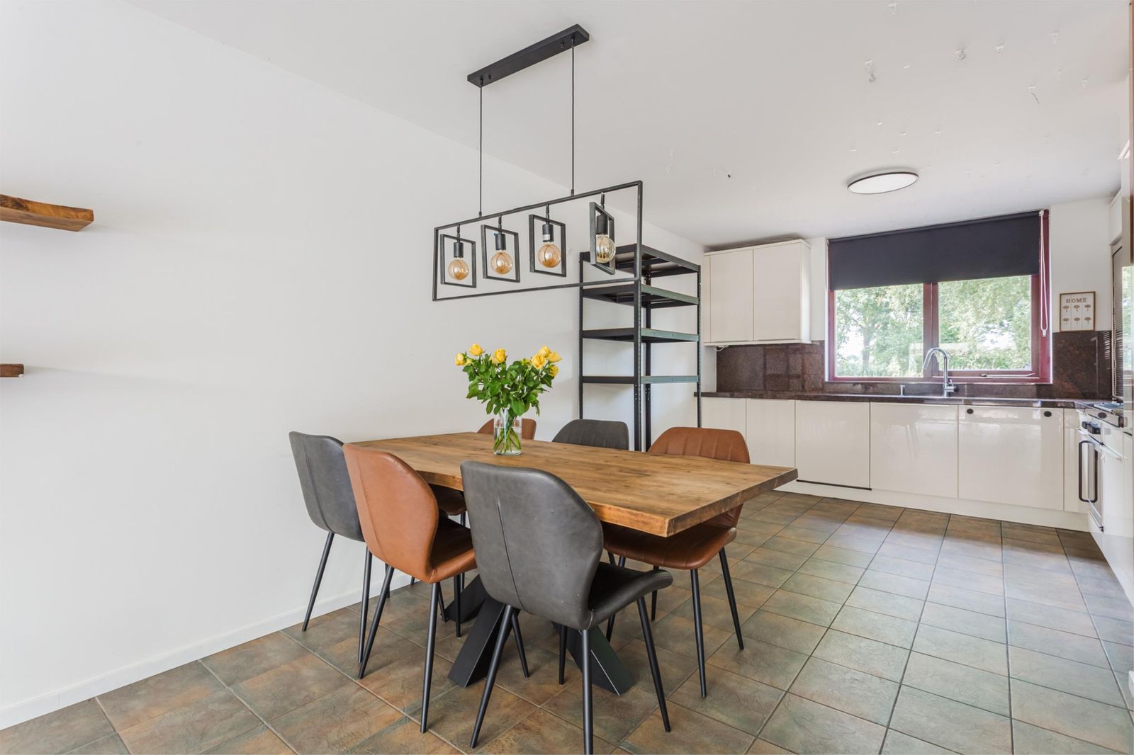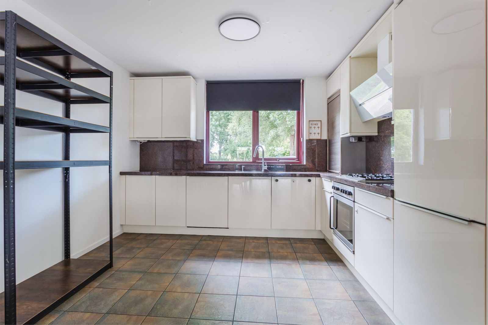 Entree met hal, meterkast, toilet en trapopgang. De woonkamer is heerlijk licht door de grote raampartijen en biedt volop mogelijkheden voor een sfeervolle inrichting. Aan de voorzijde ligt de open keuken met vrij uitzicht, voorzien van o.a. een vaatwasser, koelkast, oven, 4-pits gaskookplaat en afzuigkap.