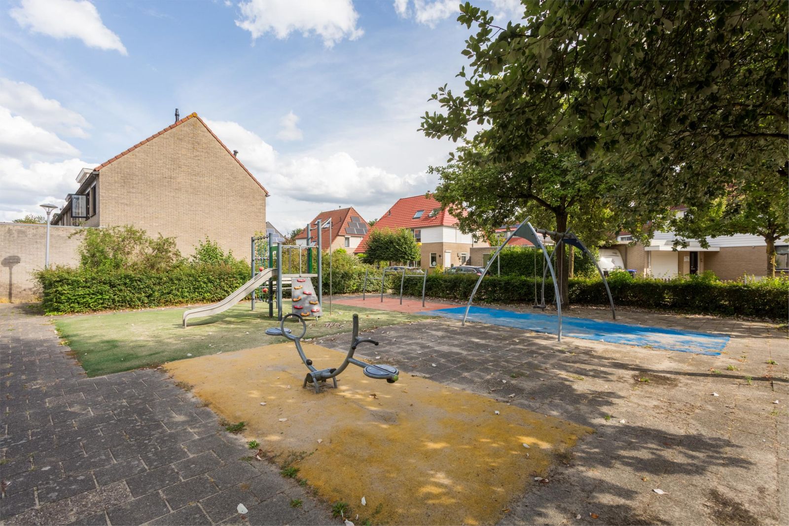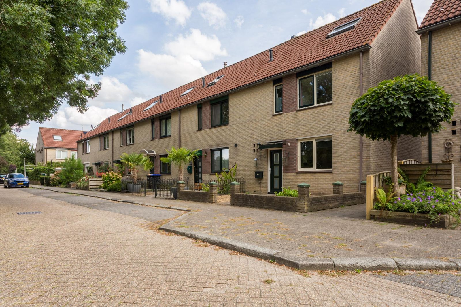 - aan rustige weg, in woonwijk, vrij uitzicht