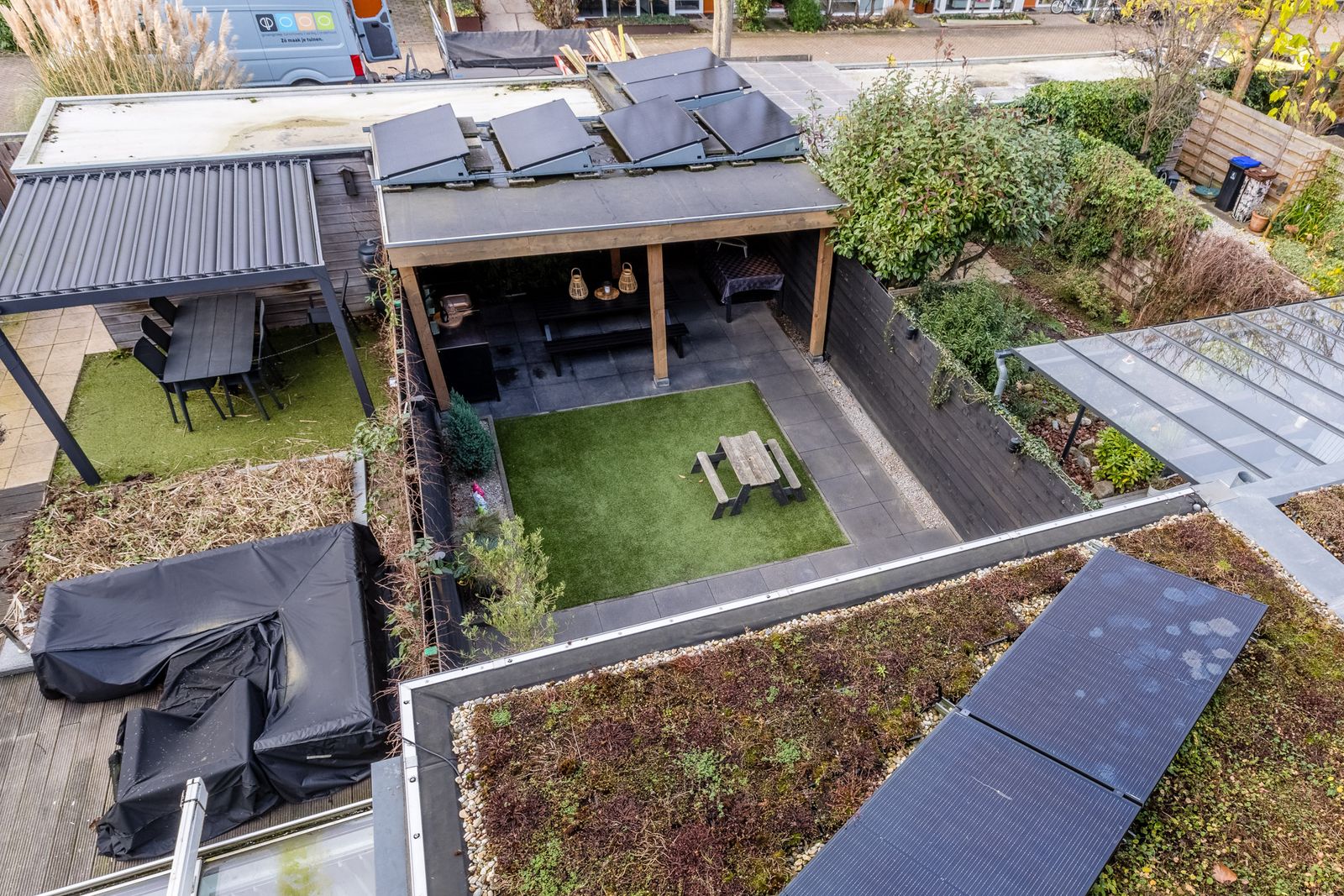 - Sedumdak op de uitbouw + 2 zonnepanelen