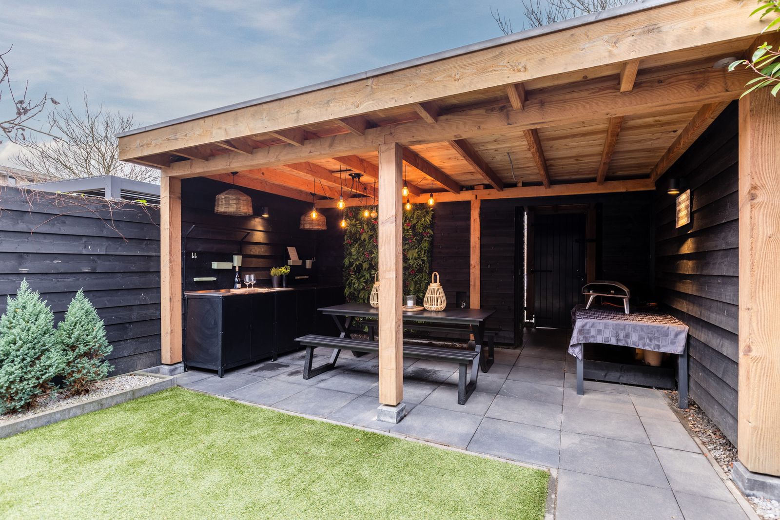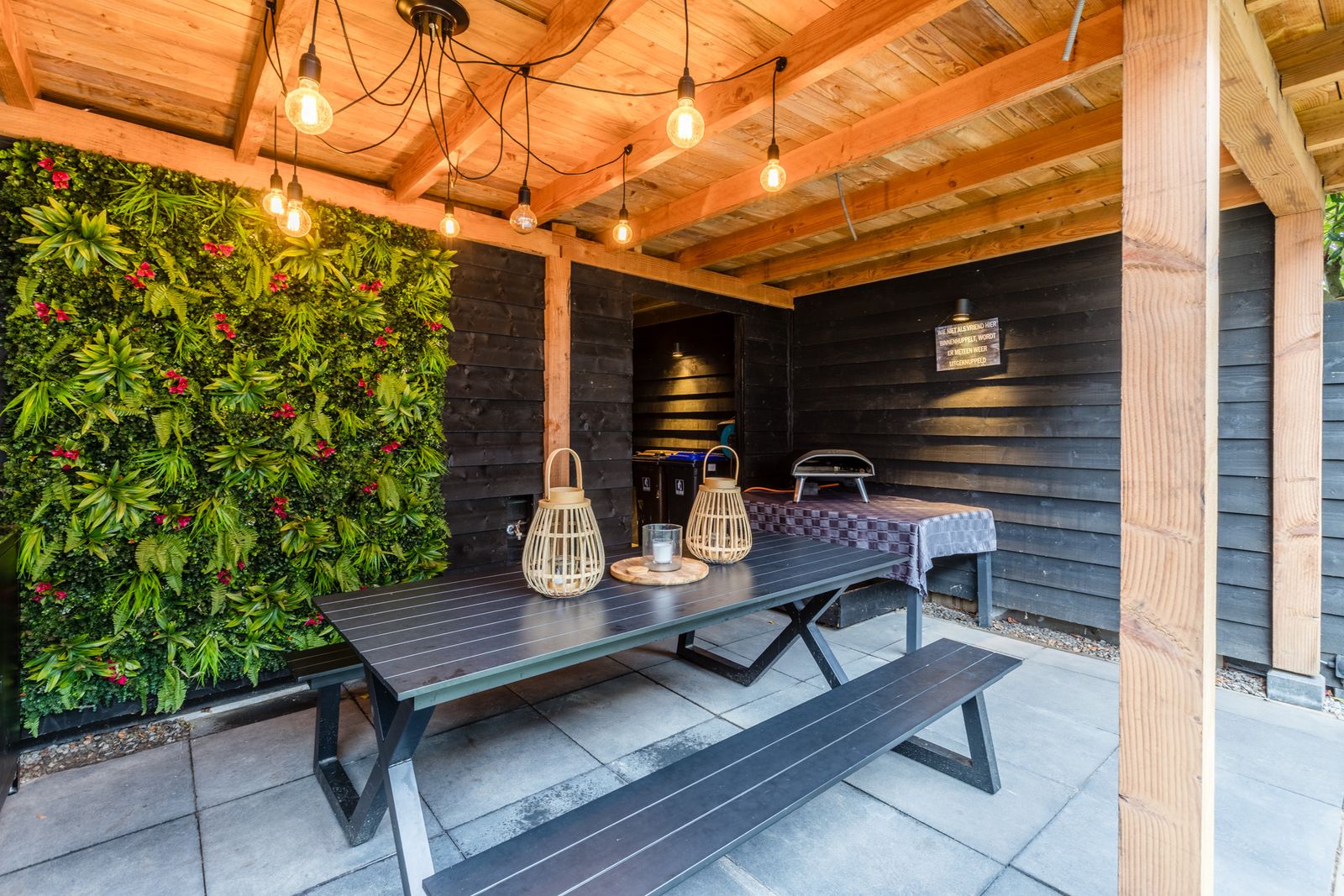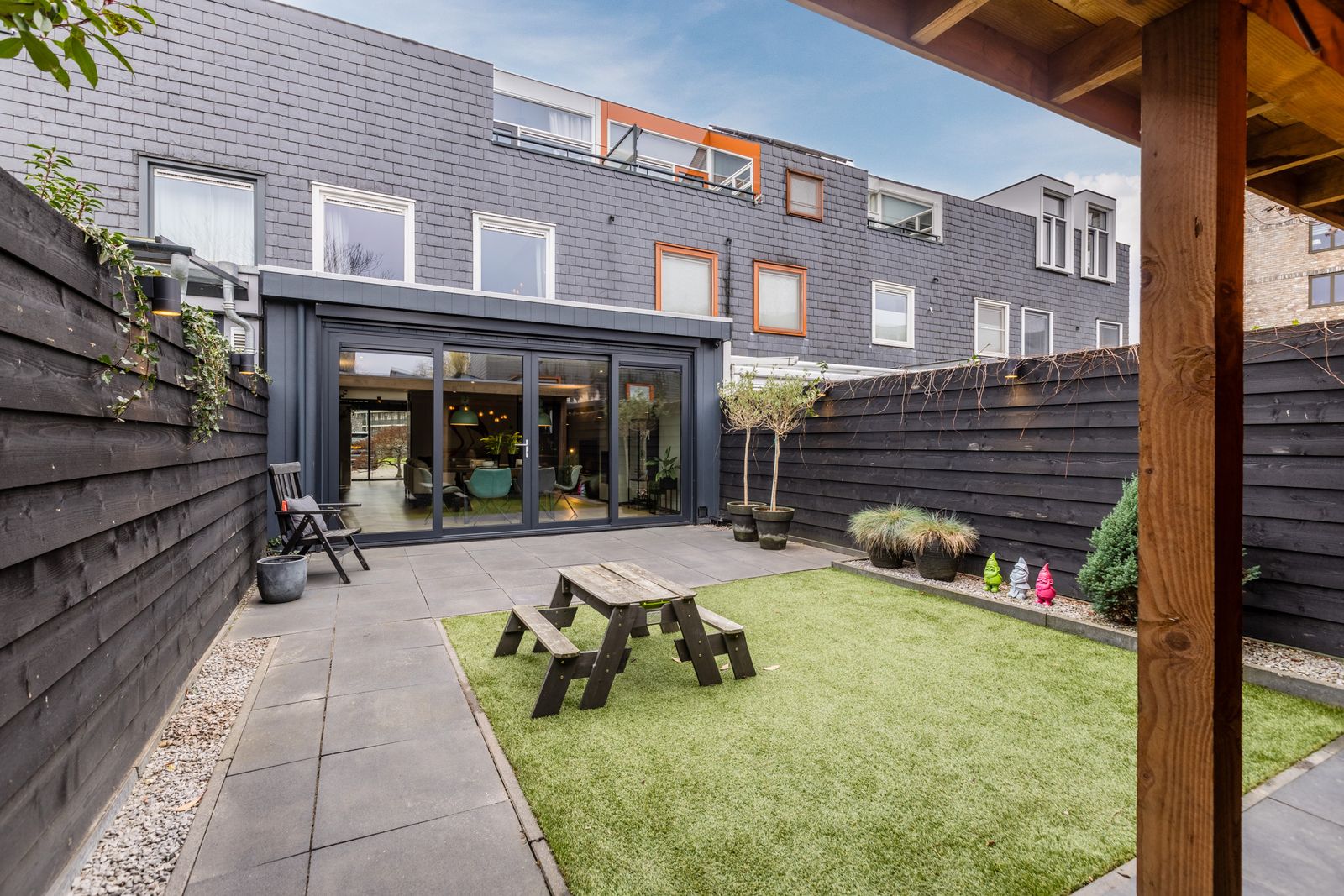 - Zonnige tuin op het westen met overkapping, schuur en achterom (afsluitbare poort)