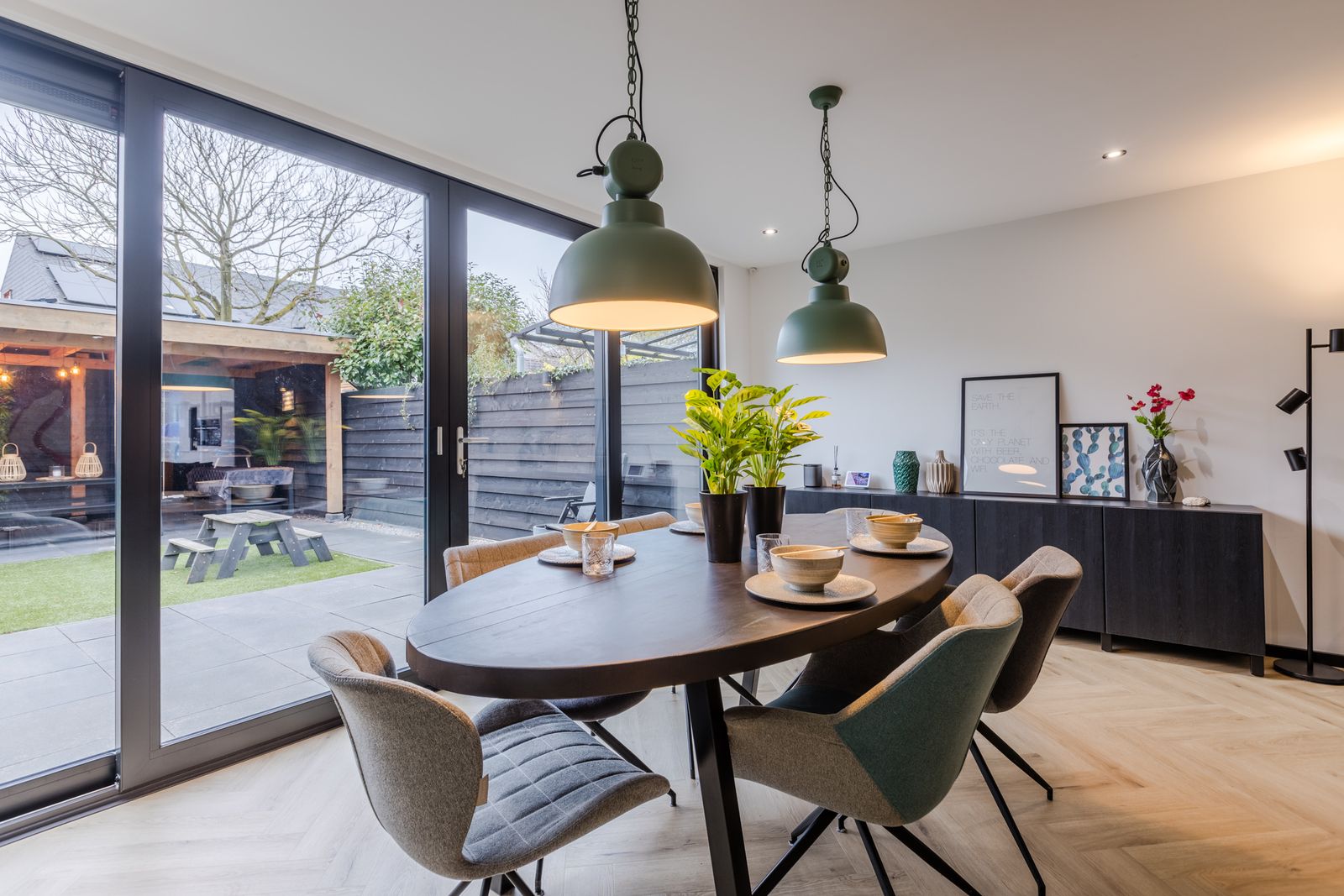 - Uitbouw (2022) met vloerverwarming en aluminium schuifpui (triple glas)