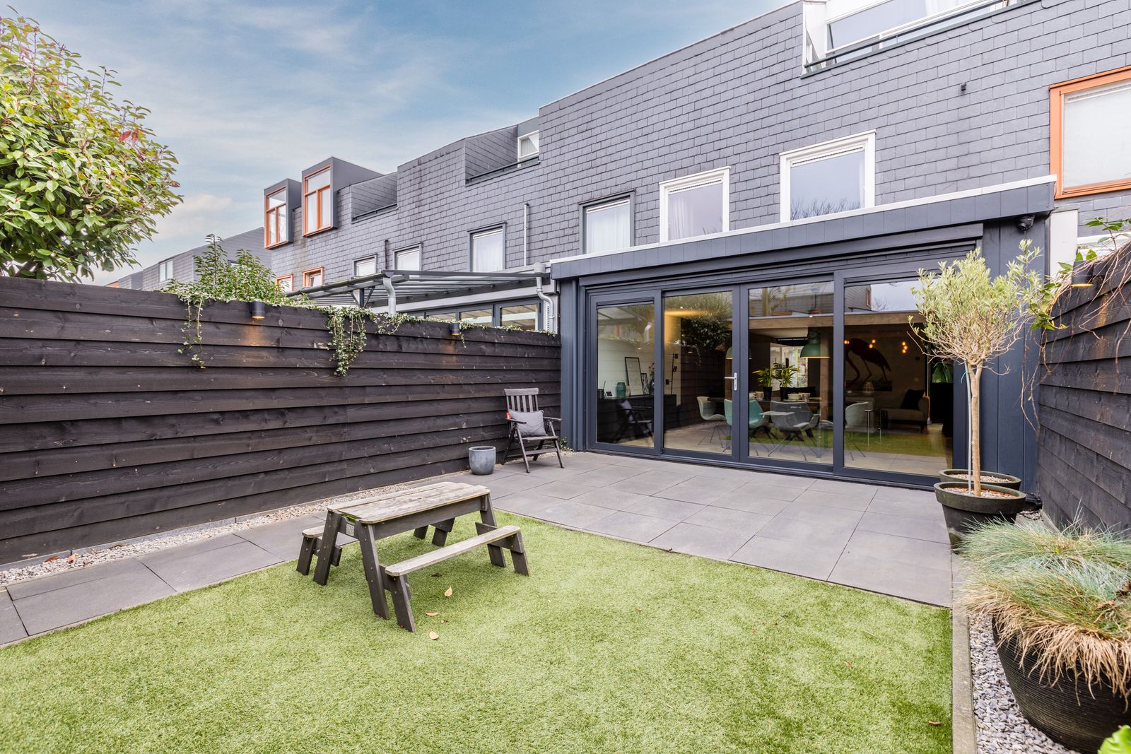 De woning is bovendien instapklaar en energiezuinig (energielabel A). Absolute blikvanger is de uitbouw uit 2022 met vloerverwarming en een fraaie aluminium schuifpui met triple glas naar de onderhoudsarme tuin. Aan de buitenzijde is de woning grotendeels afgewerkt met onderhoudsvrije leisteen: mooi én praktisch.