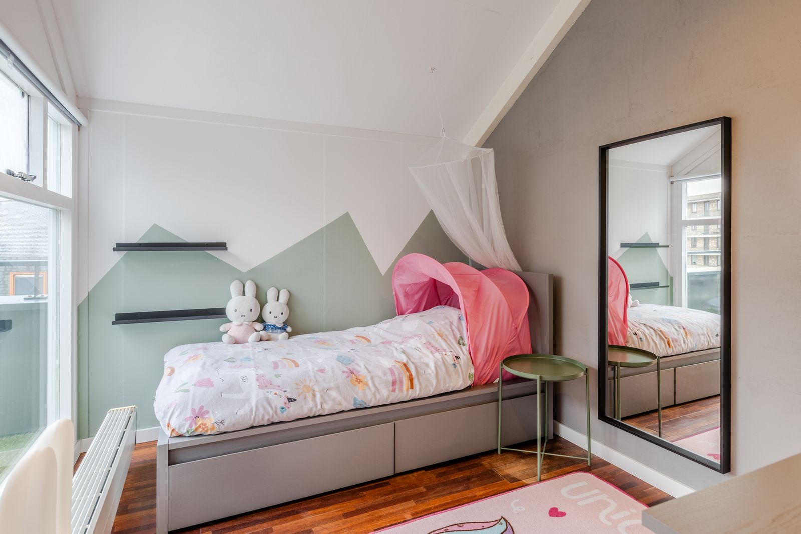 Een speelse, verrassend ruime verdieping met hoge nok, 2 slaapkamers en 2 grote bergingen. Er is bovendien een extra zoldertje gemaakt voor nog meer opbergruimte. Praktisch: aparte groepen voor wasmachine en droger. Extra pluspunten: op deze verdieping is ook een balkon aanwezig en op de overloop zorgt een Velux dakraam voor prettig daglicht.