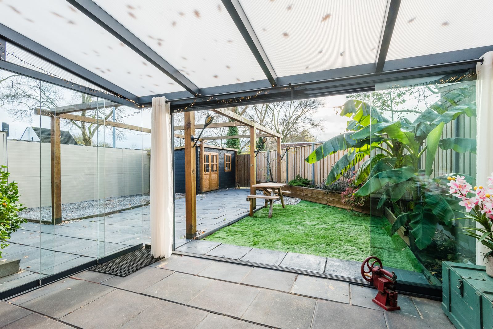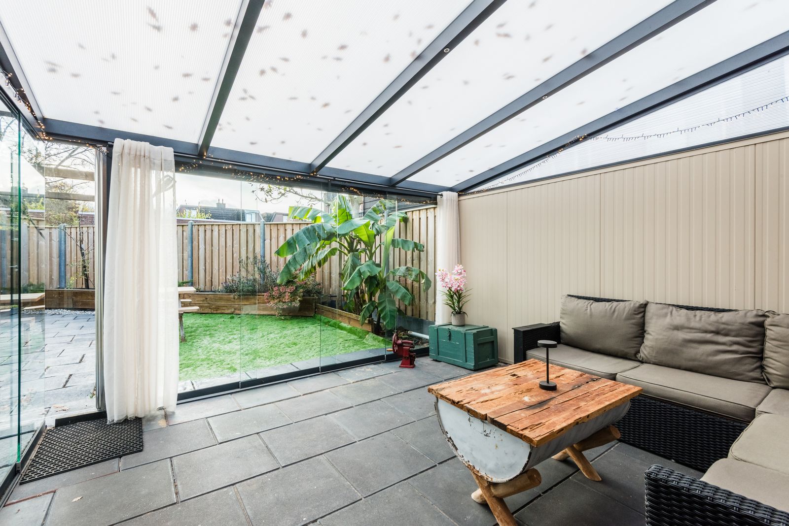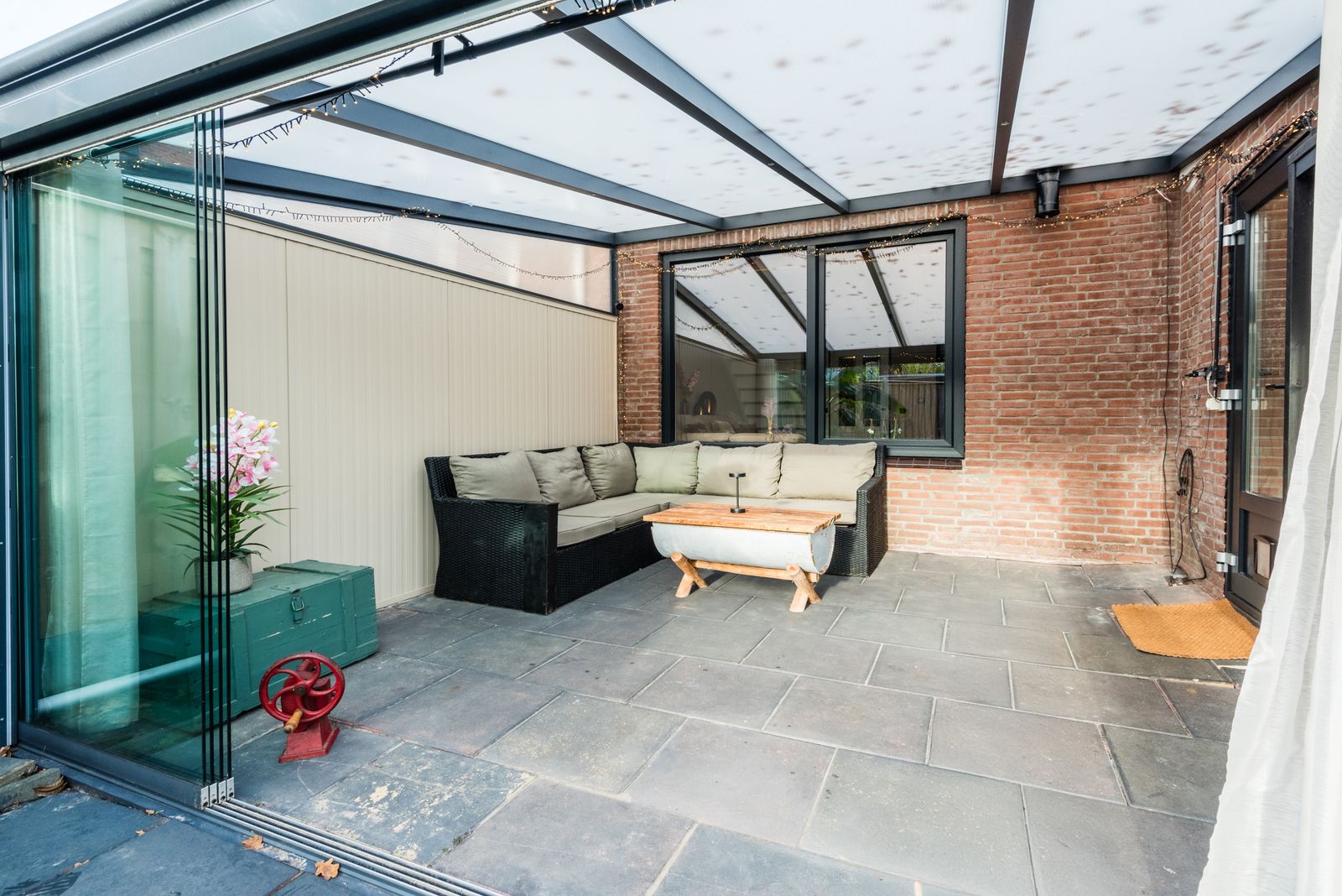 Uniek aan deze woning is de fijne tuinkamer, waar je het hele jaar door kunt genieten van het buitenleven.
