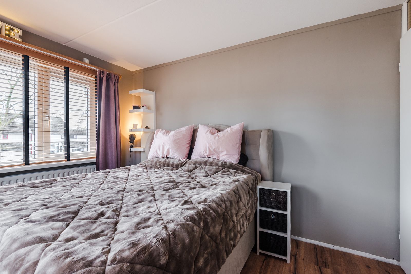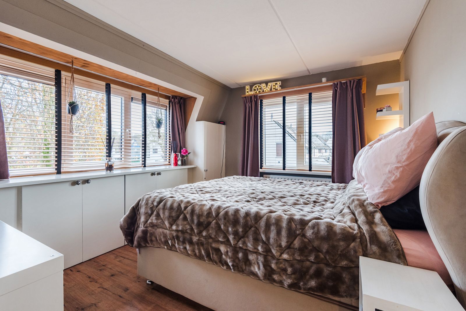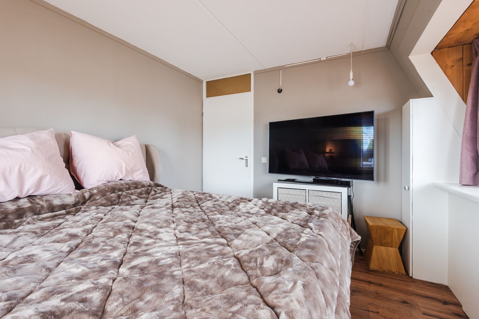 De slaapkamer aan de voorzijde is voorzien van een dakkapel wat voor voldoende licht in de slaapkamer zorgt.