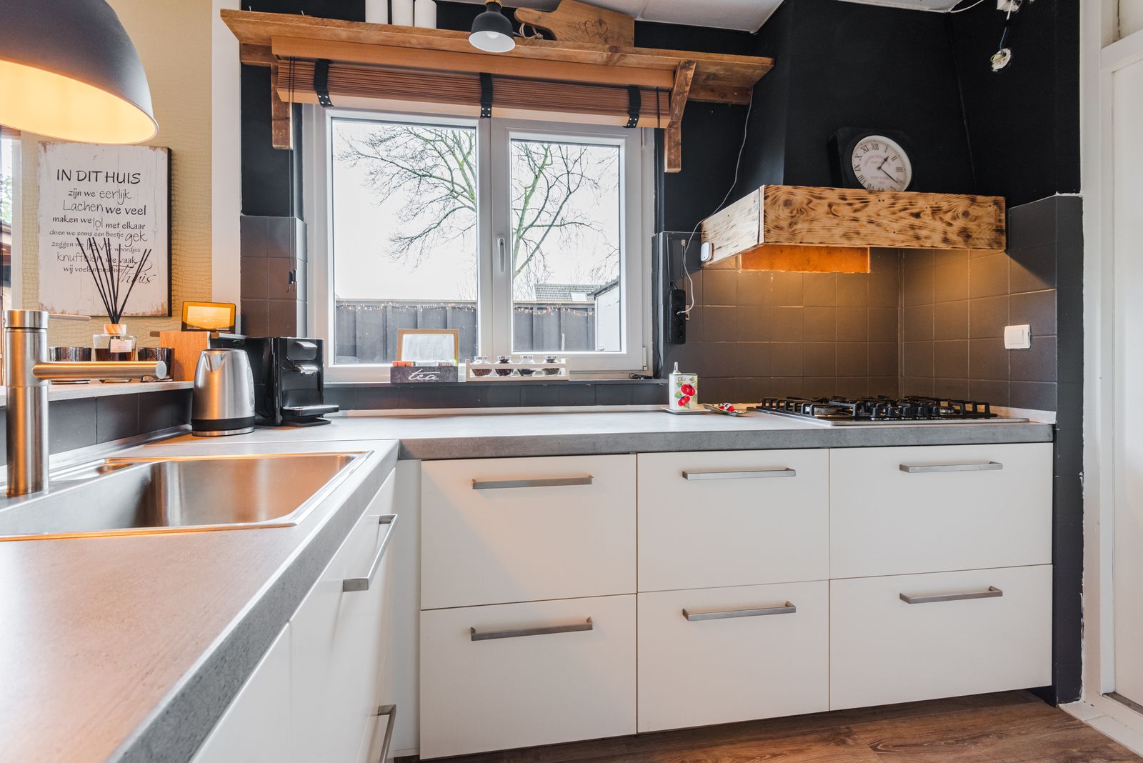 De keuken is in 2017 geplaatst en voorzien van een gasfornuis, afzuigkap en vaatwasser.