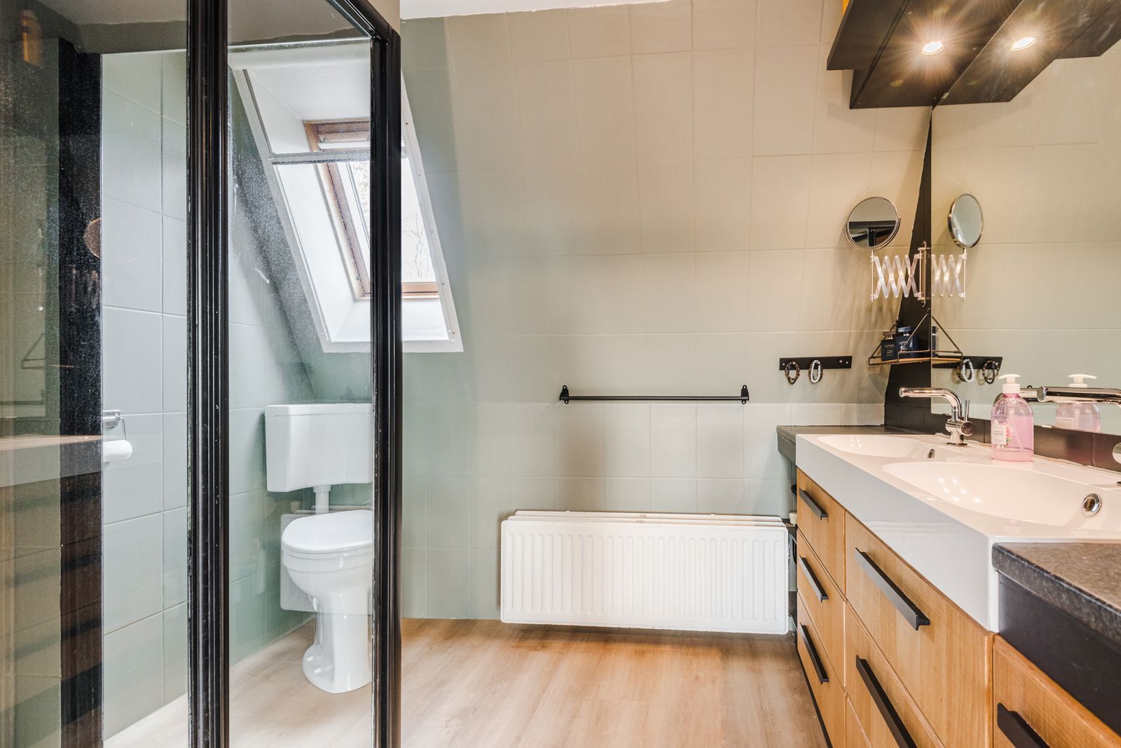 De badkamer is in 2019 gerenoveerd en beschikt over een raam wat voor natuurlijk lichtinval zorgt.