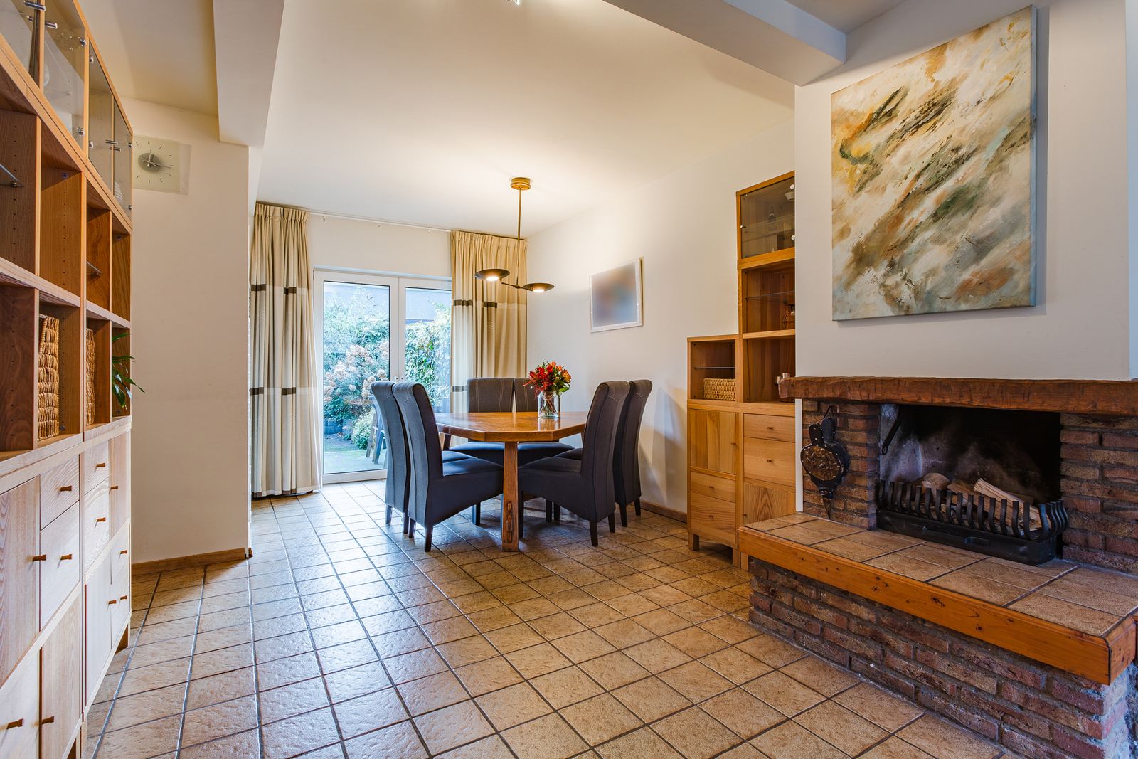 Layout: entrance with staircase, spacious bright living-dining room with doors leading to the garden, an open kitchen with all the desired appliances, build in closet and a toilet. The ground floor has underfloor heating.