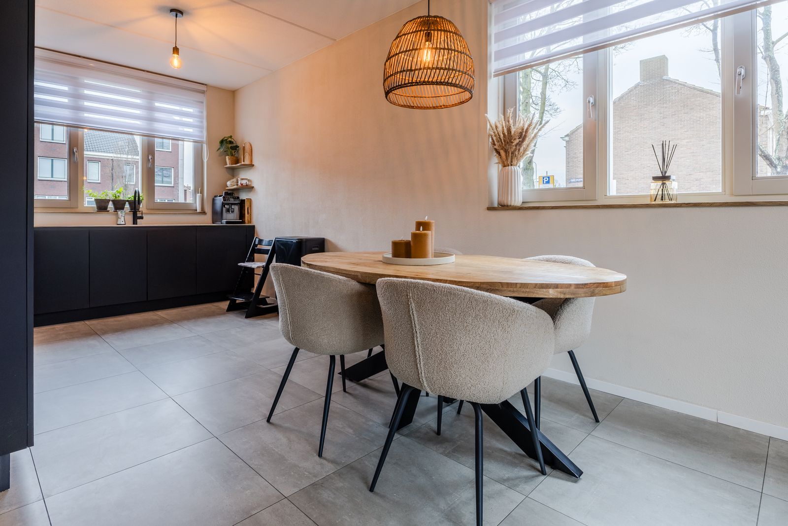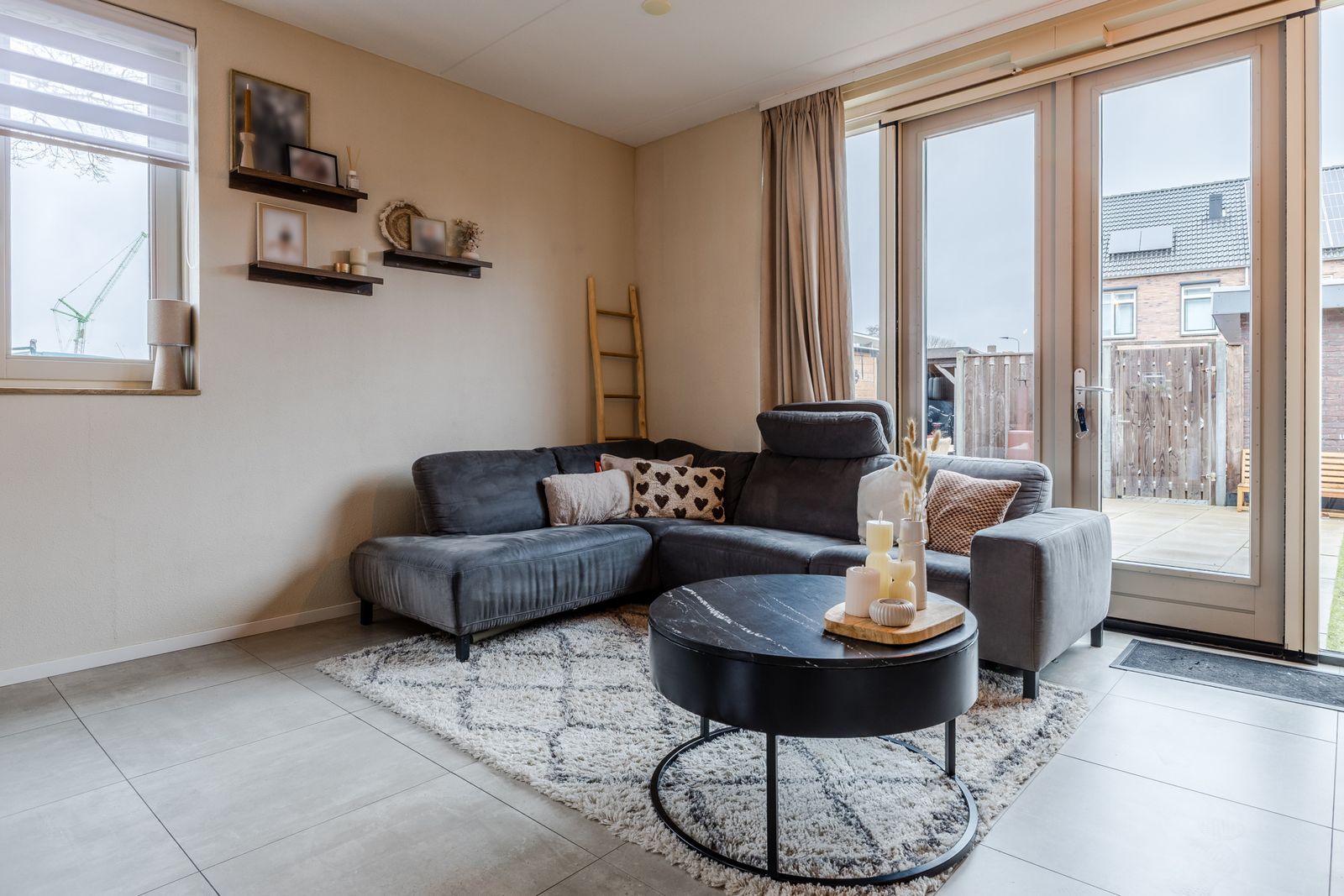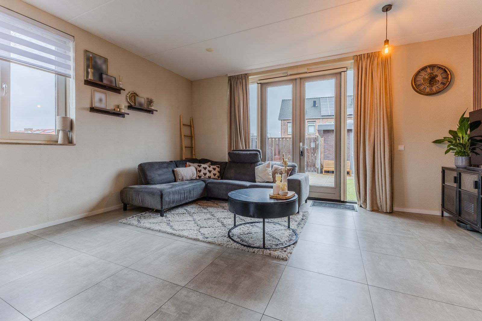 De ruime en lichte woonkamer (ca. 34,5 m² inclusief keuken) vormt het warme hart van de woning. Dankzij de openslaande deuren naar de tuin lopen binnen en buiten naadloos in elkaar over. Het extra zijraam in de hoekwoning zorgt voor nog meer daglicht.