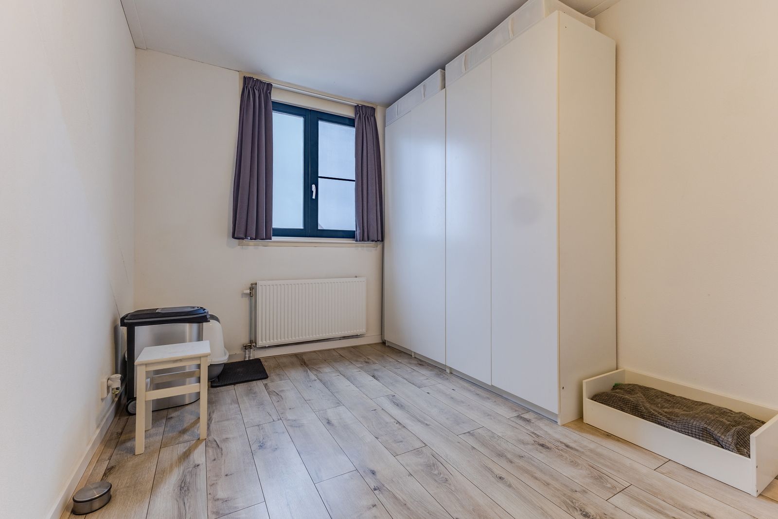 Alle drie de kamers zijn voorzien van rolluiken. En de slaapkamer aan de achterzijde van een airco.