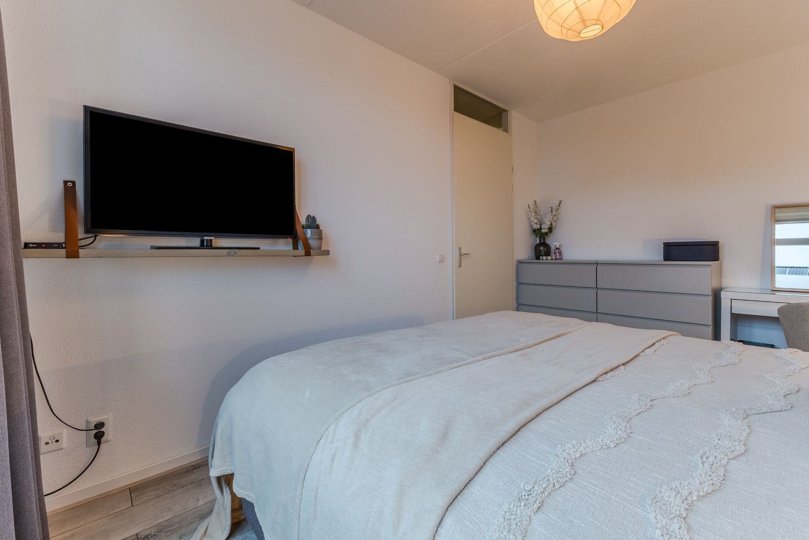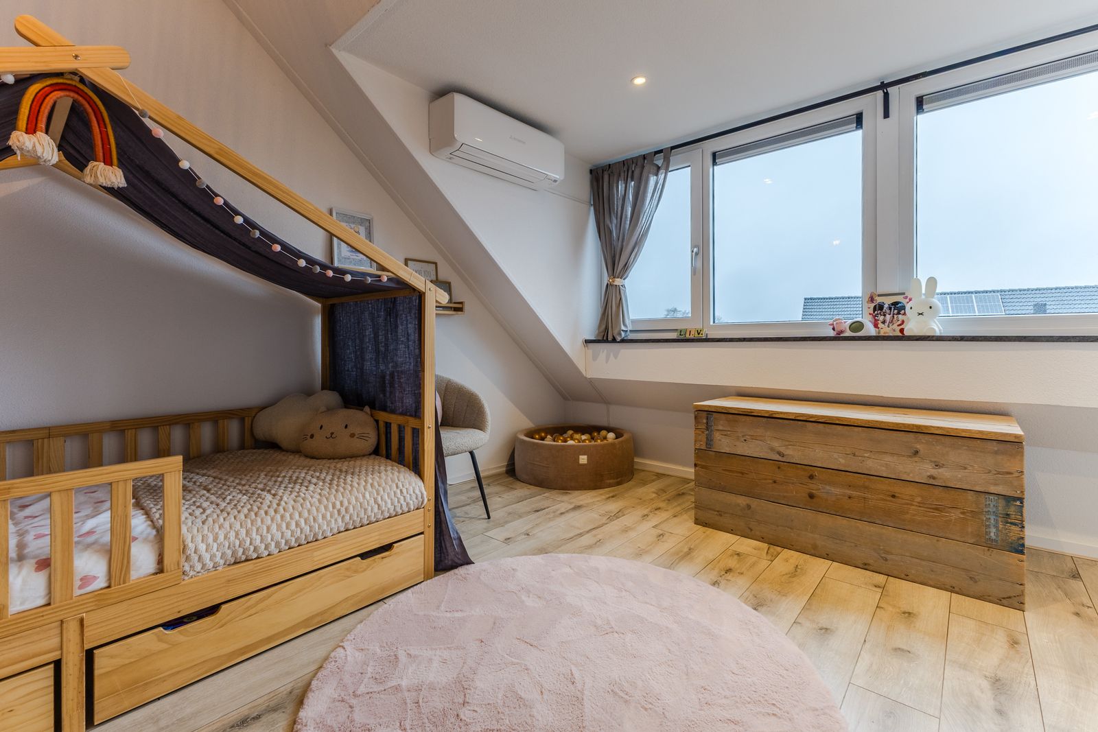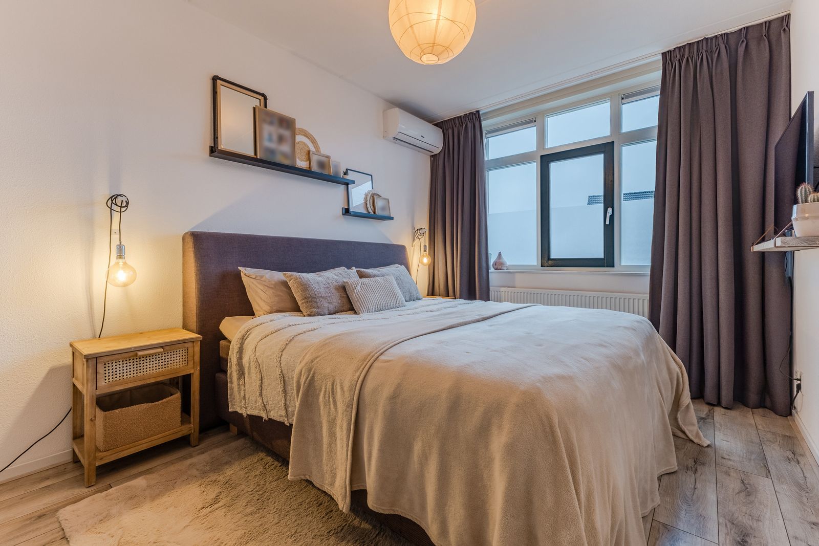 In de slaapkamer aan de achterzijde hangt een airco.