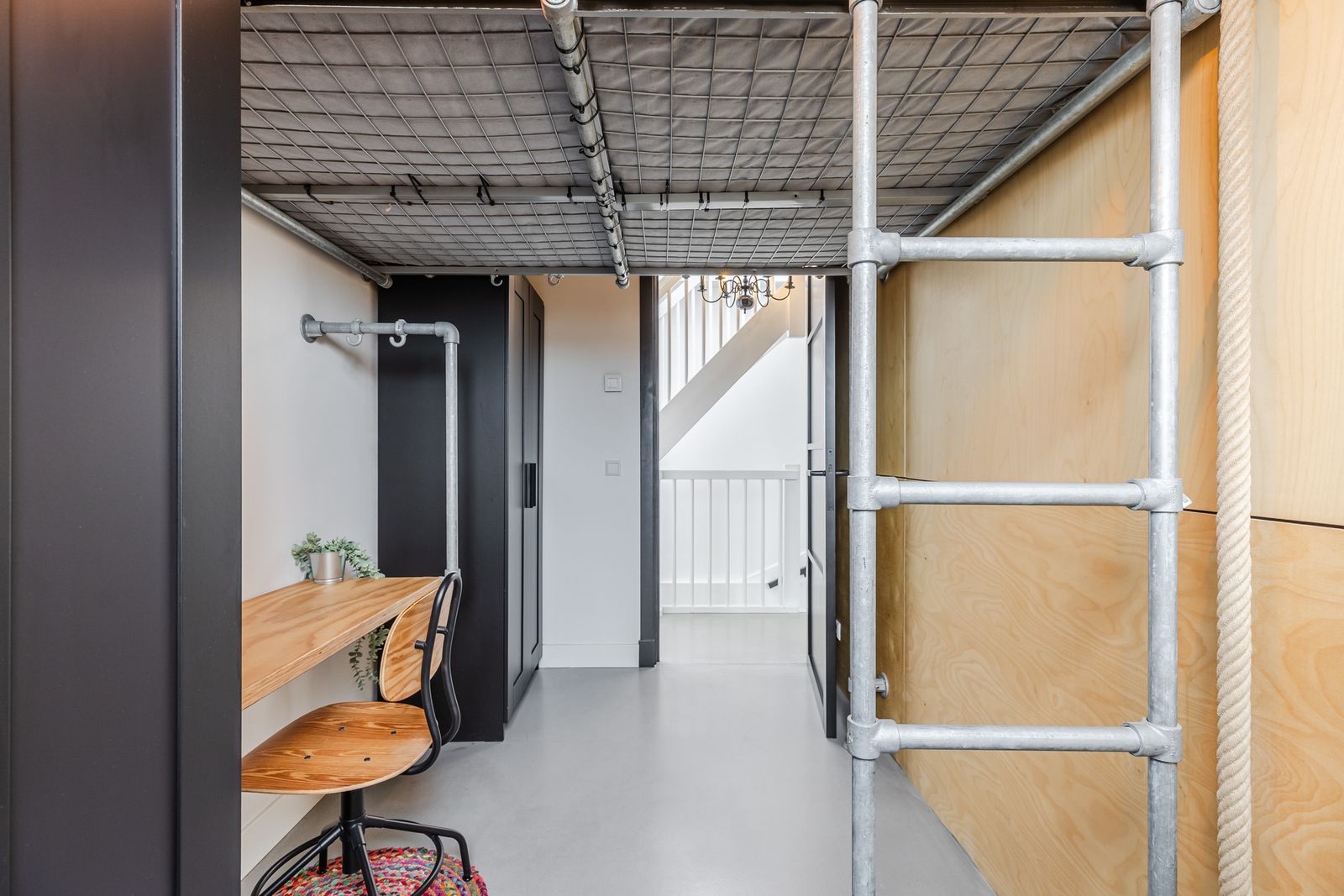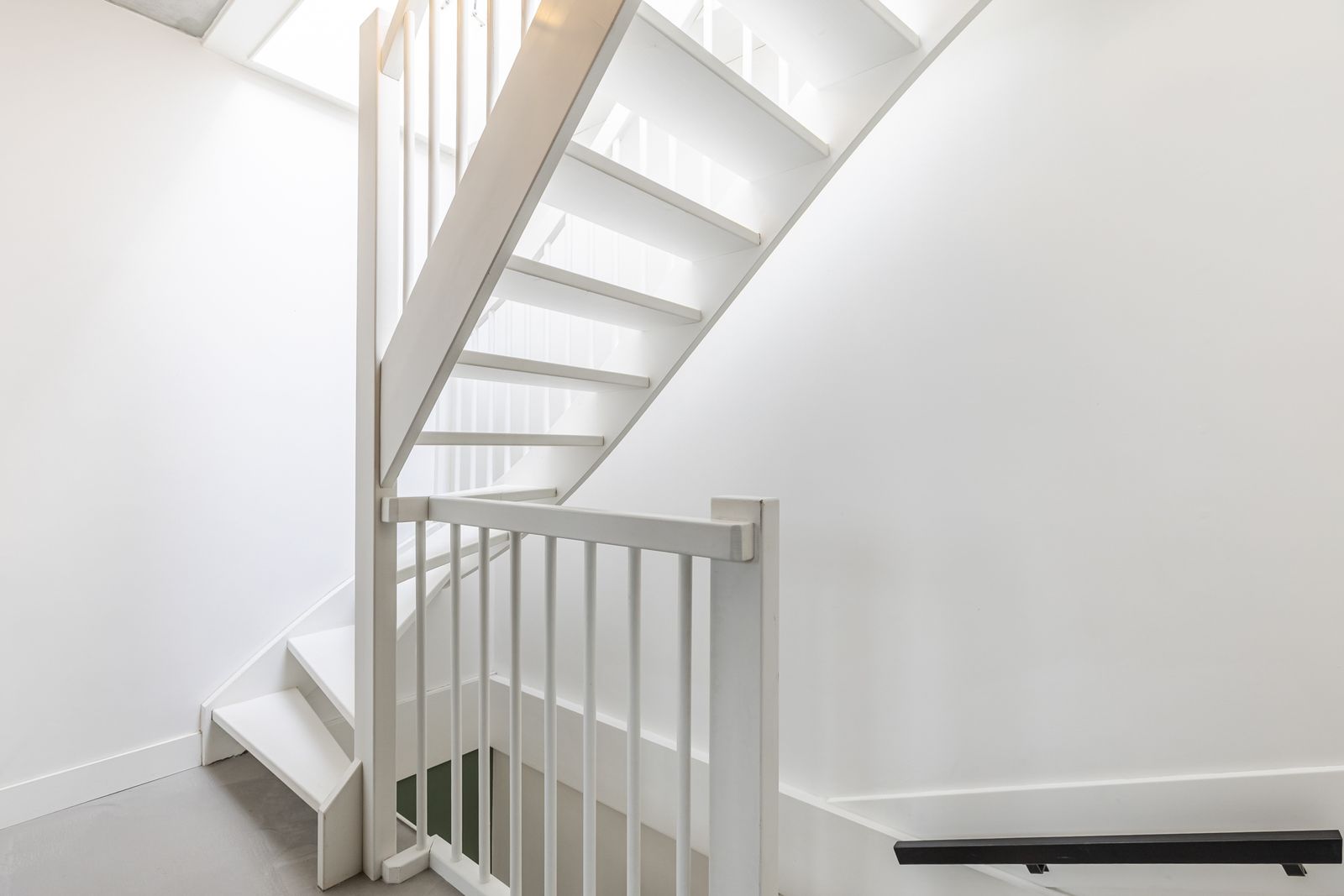 De woning kenmerkt zich door een speelse en praktische indeling. Op de parterre bevinden zich een ruime berging en een lichte woonkeuken met erker. De eerste verdieping is volledig ingericht als royale woonkamer met balkon. Op de tweede verdieping zijn twee slaapkamers en een moderne badkamer gesitueerd, met toegang tot het riante dakterras.