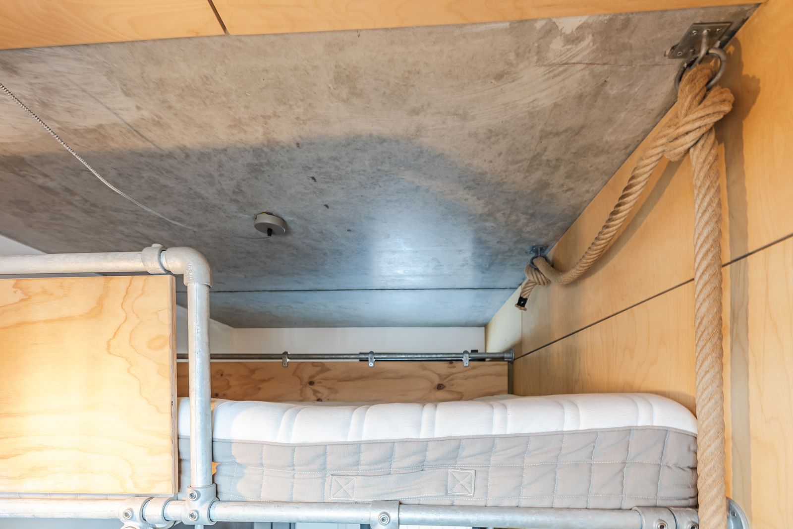 De hoofdslaapkamer biedt ruimte voor een kingsize bed en veel kastruimte. De tweede slaapkamer is voorzien van een tweepersoons hoogslaper met geïntegreerd bureau. Beide kamers beschikken over Velux dakramen.