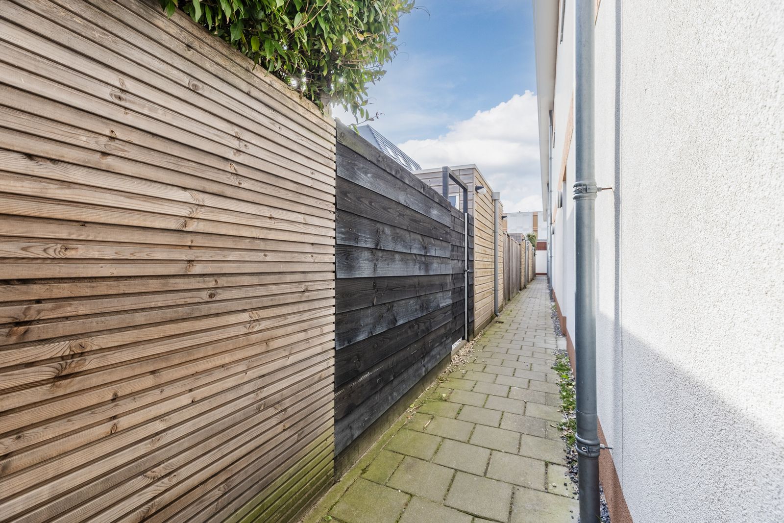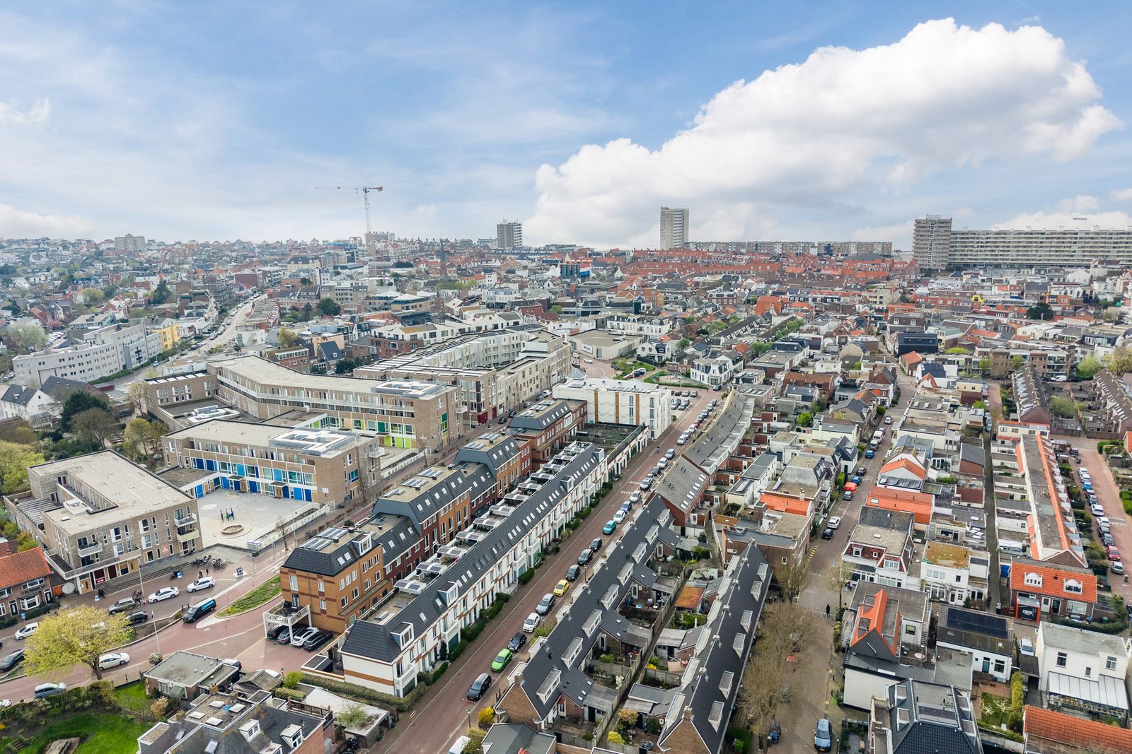 Een royaal dakterras over de volledige woning, ideaal voor ontspanning en gezellige momenten. Hier is ruimte voor een loungeset en barbecue, met een prachtig uitzicht over het centrum van Zandvoort. Aan beide zijden zijn de zonnepanelen op efficiënte wijze geplaatst.