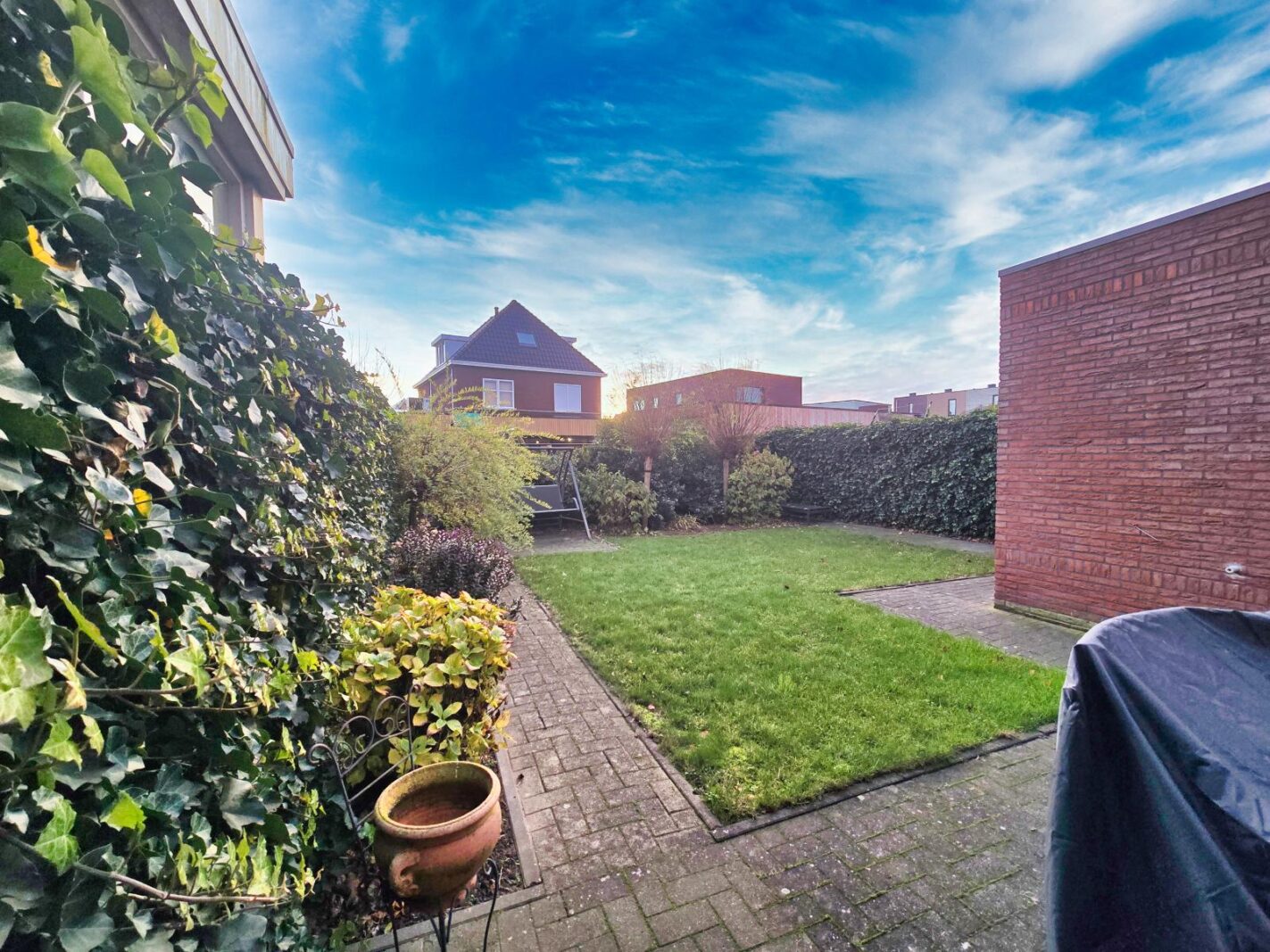 Adjacent to the rear of the living room is the practical utility room. Here, a Miele washing machine and dryer are at your disposal. From the utility room, you have internal access to the garage. You can access the backyard from both the utility room and the garage. The garden is very spacious and, due to its favorable orientation, offers many hours of sunshine. It is a delightful place to relax in peace.