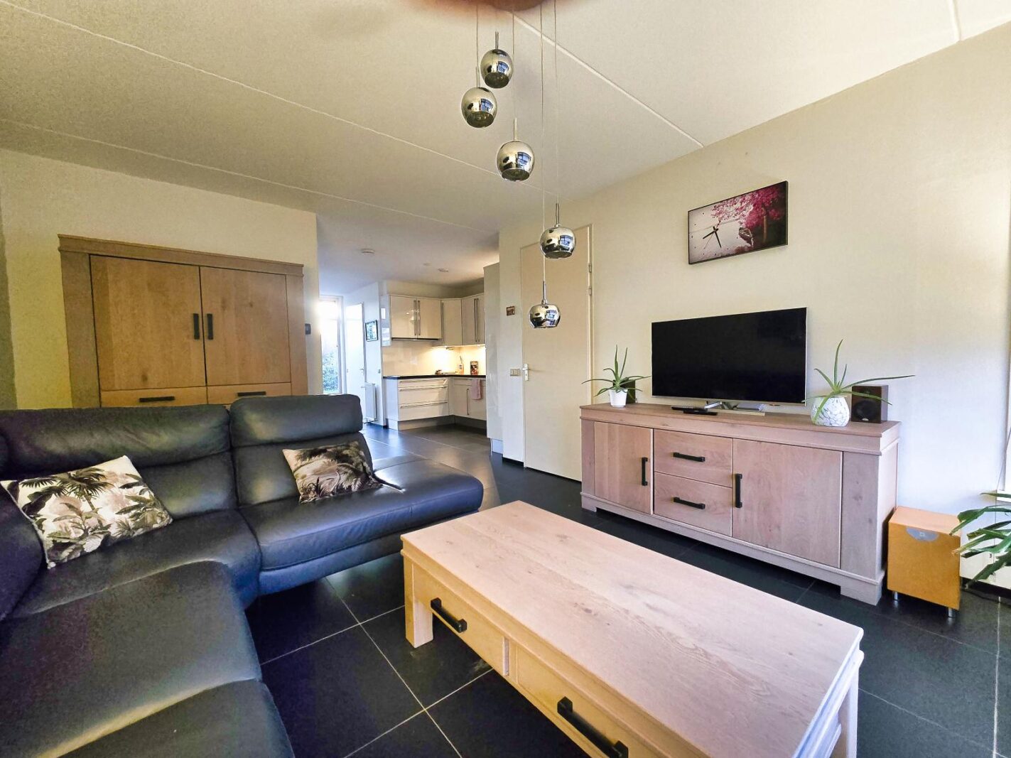 Through the front door, you enter the hall, which houses the meter cupboard and a separate toilet. From the hall, you walk into the living room with an open kitchen. What immediately stands out is the spaciousness and the pleasant natural light. The layout is practical and creates a cozy atmosphere. At the front, you will find the comfortable seating area with a television. At the rear, the dining area is situated with a view of the garden. The modern open kitchen is fully equipped with all conveniences and built-in appliances from high-quality brands.