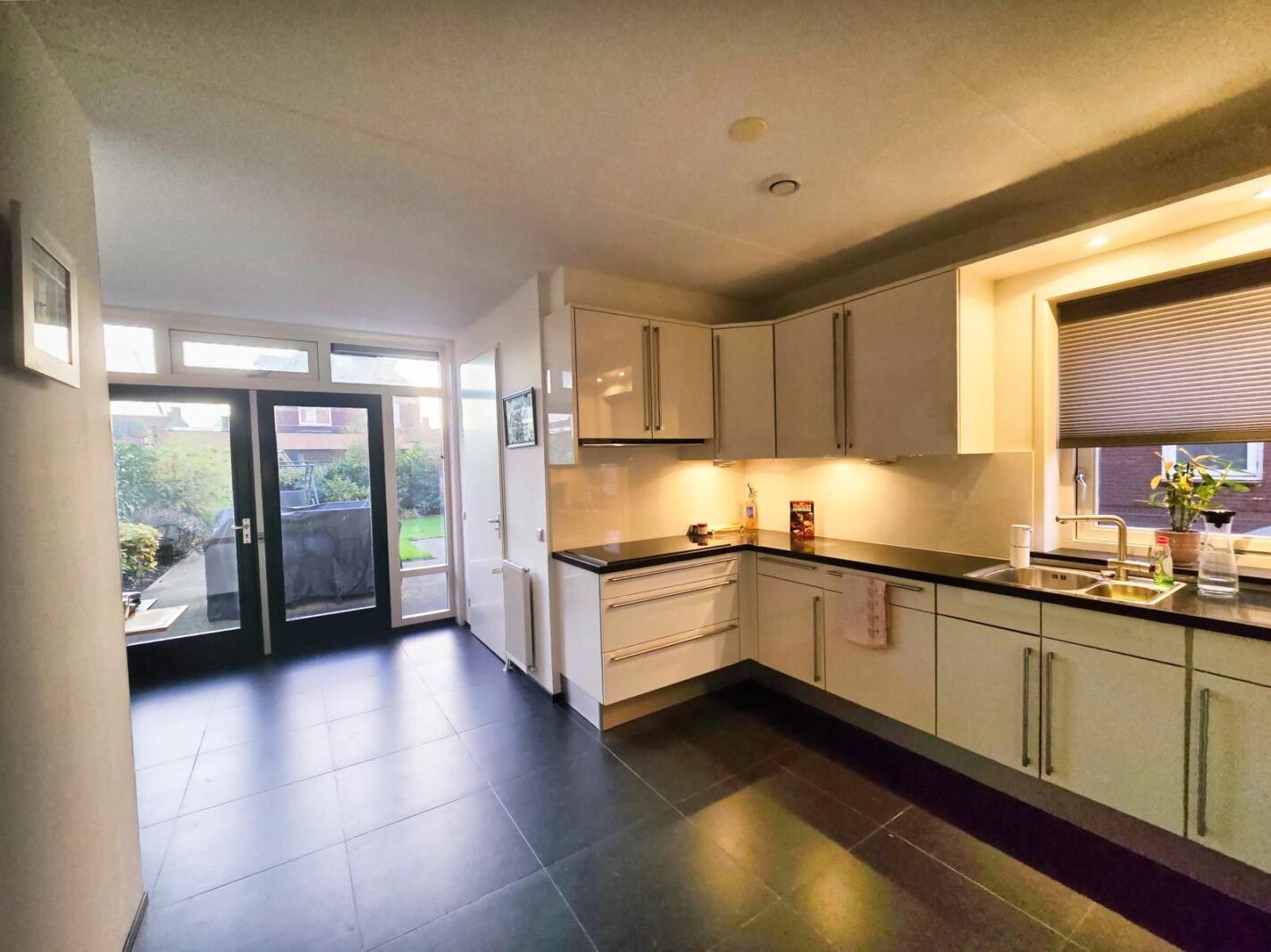 Aan de achterzijde is de eethoek gesitueerd met zicht op de tuin. De moderne open keuken is van alle gemakken voorzien en uitgerust met inbouwapparatuur van hoogwaardige kwaliteitsmerken.