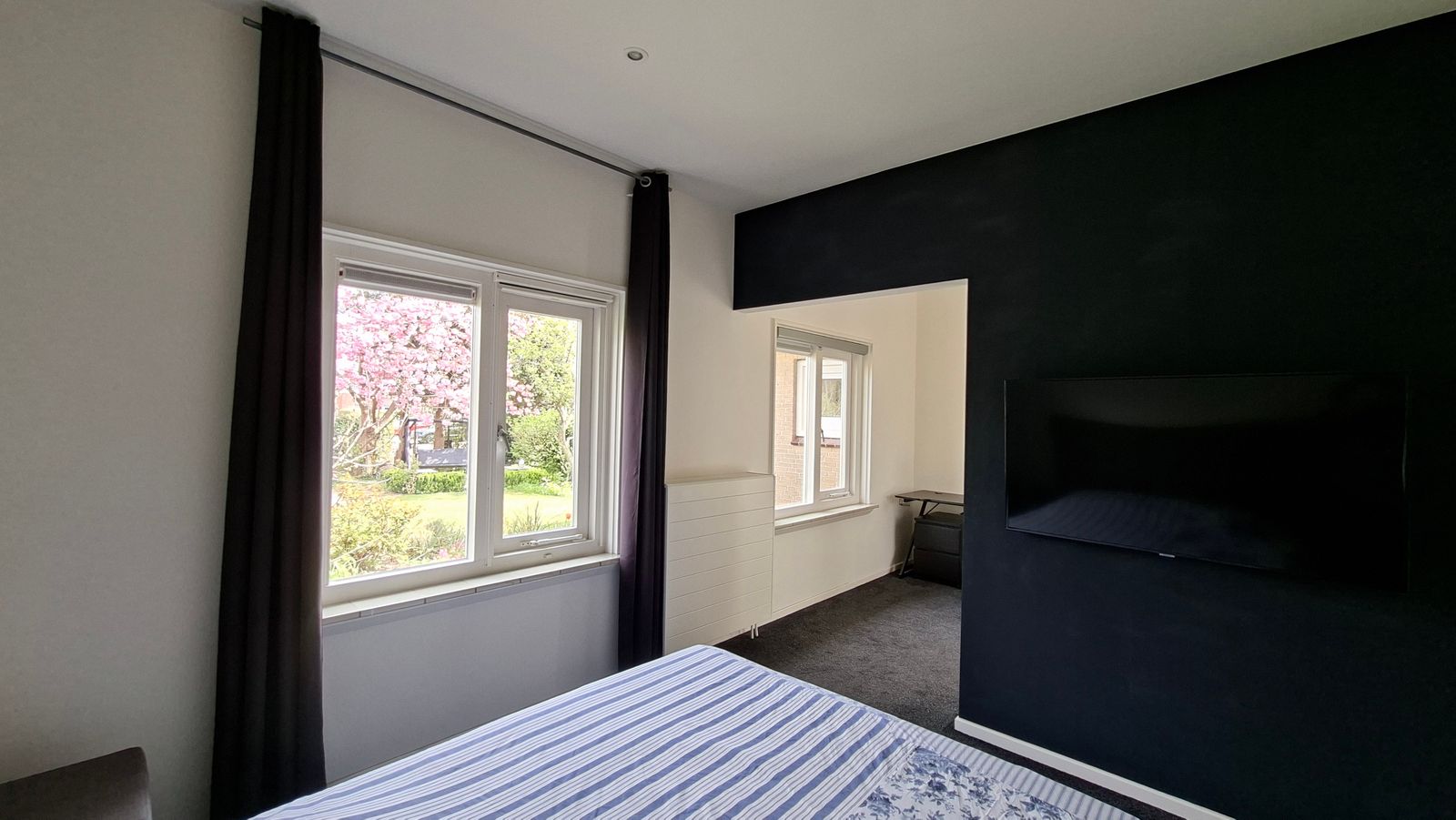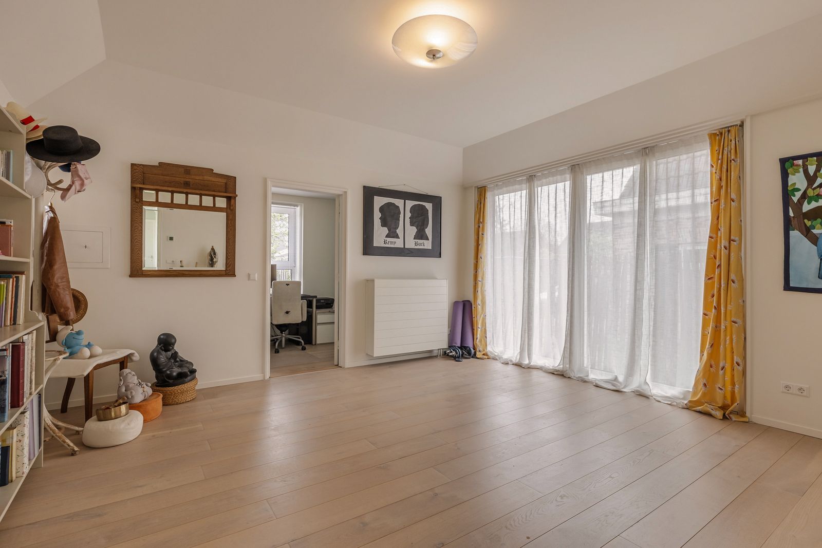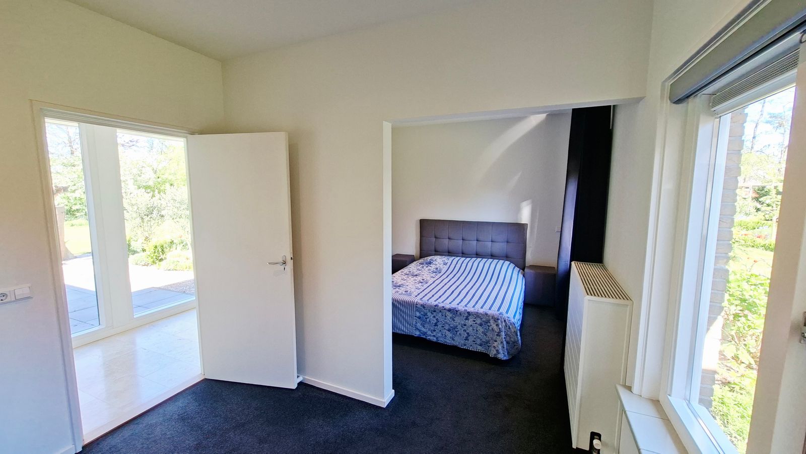 Rechts van de badkamer een ruime slaapkamer met nisje en inbouwkast. Links van de badkamer een slaapkamer met inbouwkast en grote schuifpui. Vanuit deze kamer is er toegang tot een kantoortje/walk in closet.