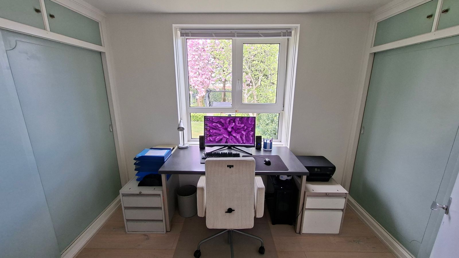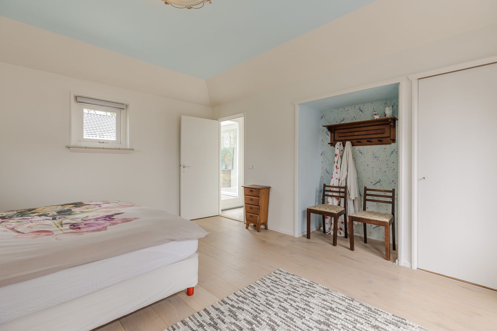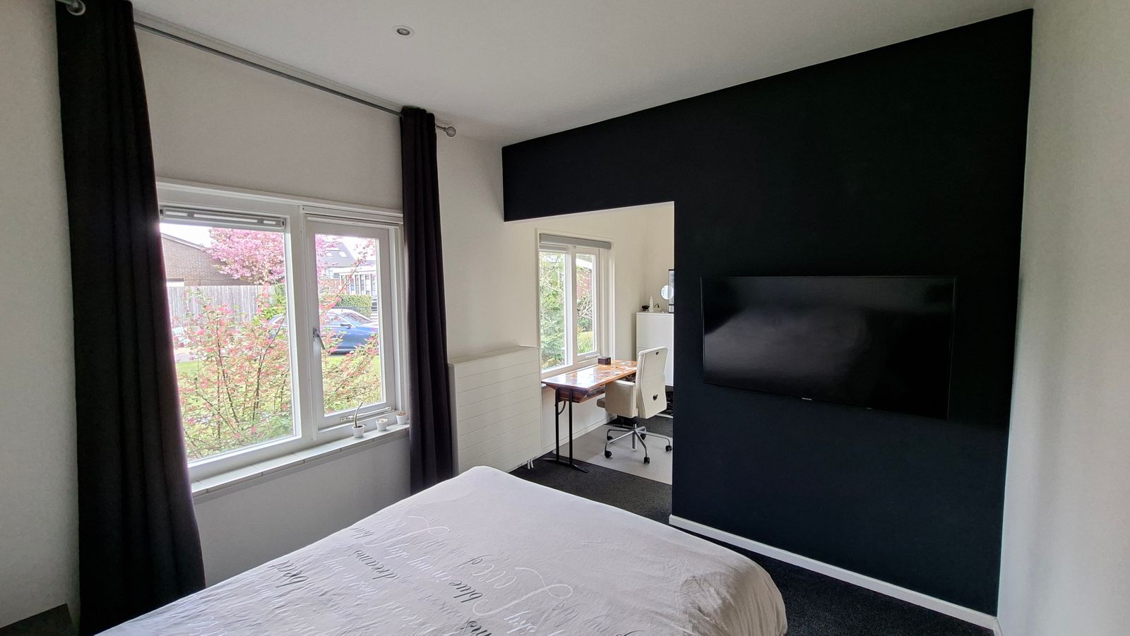 Rechts van de badkamer een ruime slaapkamer met nisje en inbouwkast. Links van de badkamer een slaapkamer met inbouwkast en grote schuifpui. Vanuit deze kamer is er toegang tot een kantoortje/walk in closet.