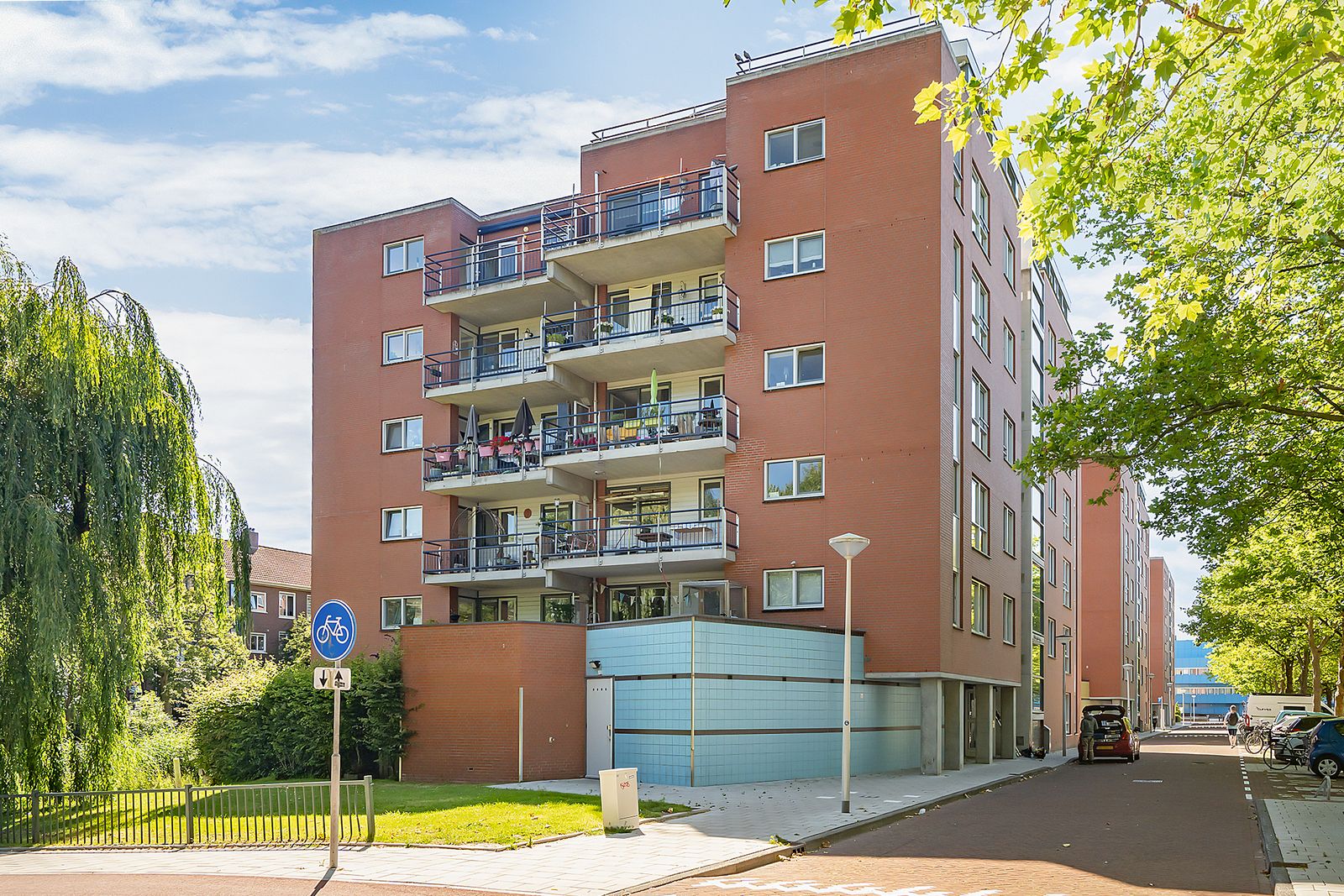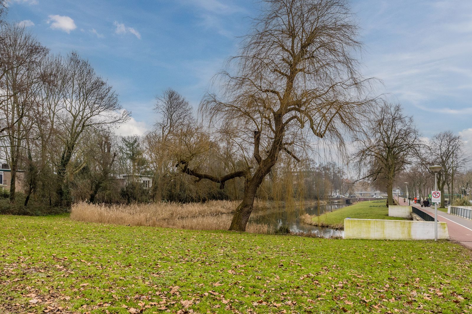 - aan rustige weg, aan vaarwater, in woonwijk, vrij uitzicht