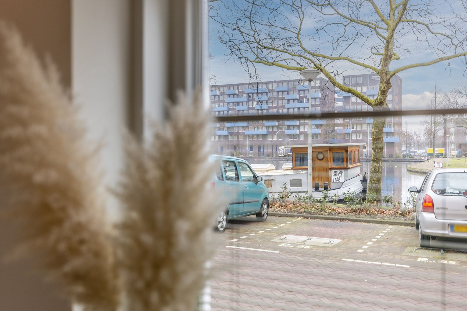 Vanuit de woonkamer kijk je heerlijk uit op vaarwater.