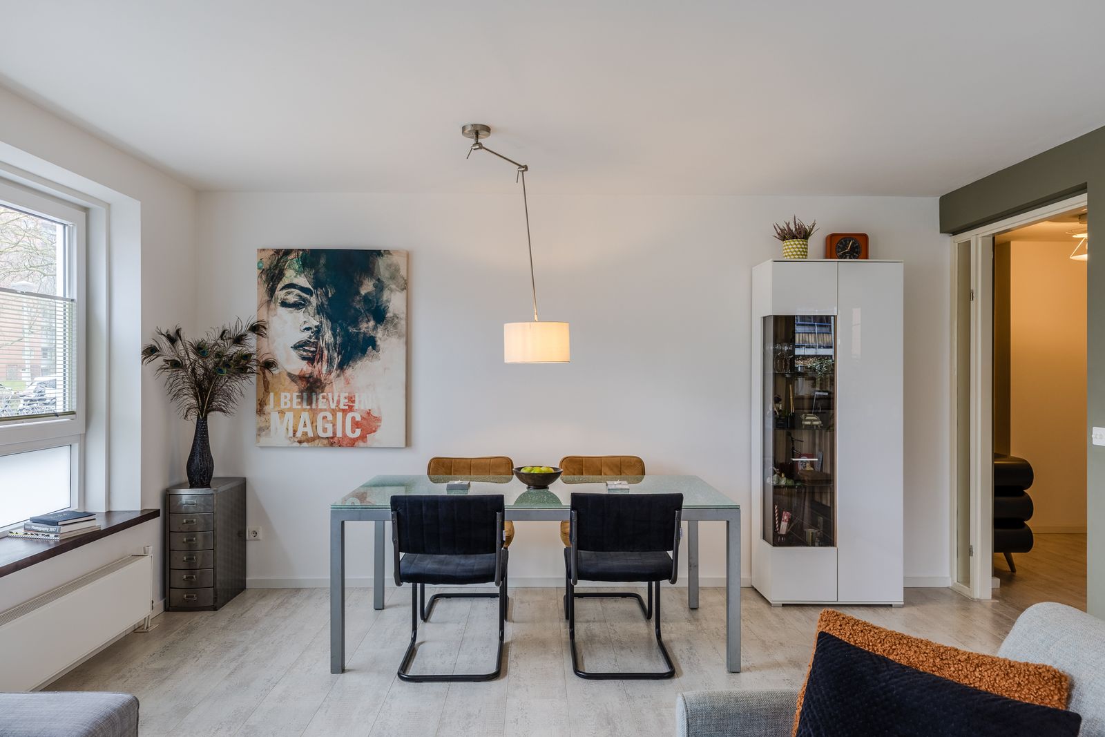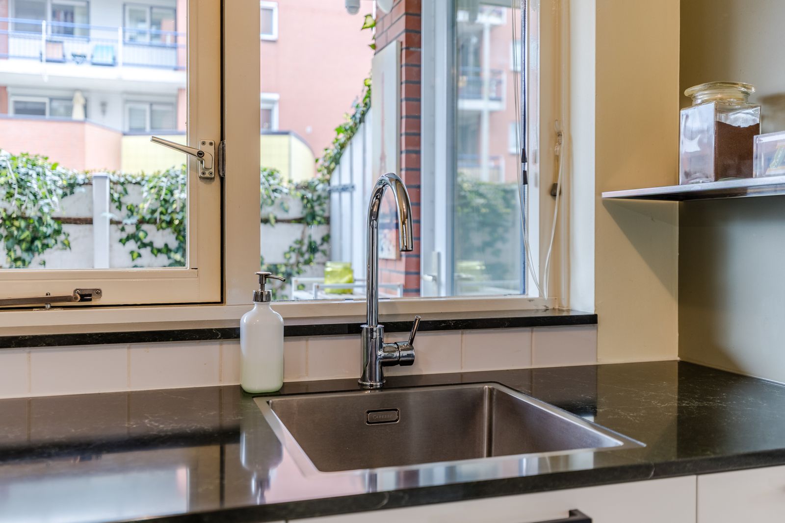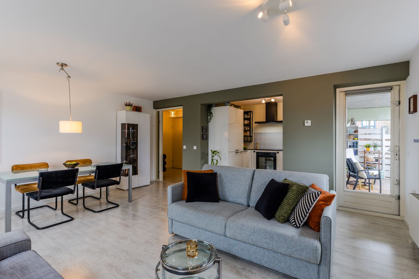 Het appartement dat deel uitmaakt van een kleinschalig complex, heeft een royale woonkamer van circa 26 m² met nieuwe kozijnen, ramen en op maat gemaakte raambekleding. De smaakvolle, recent geplaatste open keuken met composiet werkblad, is een blikvanger en creëert eenheid in de sfeerbeleving. Wat opvalt is hoe perfect de ruimtelijke indeling is van het appartement en de liefde die er in is gestoken is voelbaar.