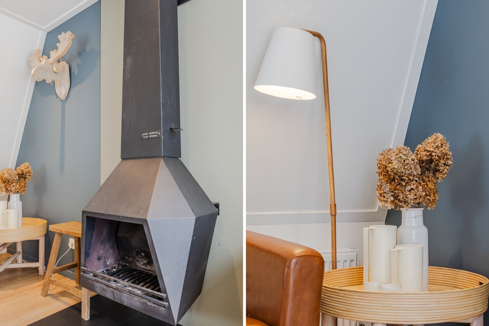 c.v.-ketel, open haard