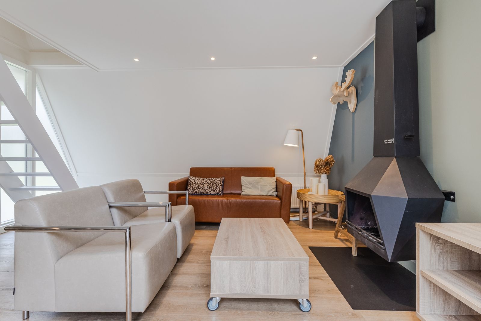U komt binnen in de hal met vernieuwde meterkast. Wanneer u doorloopt naar de knusse woon-eetkamer valt direct de gezellige houtkachel op. De moderne keuken is van alle gemakken voorzien: koelkast, vaatwasser, combimagnetronoven en kookplaat.