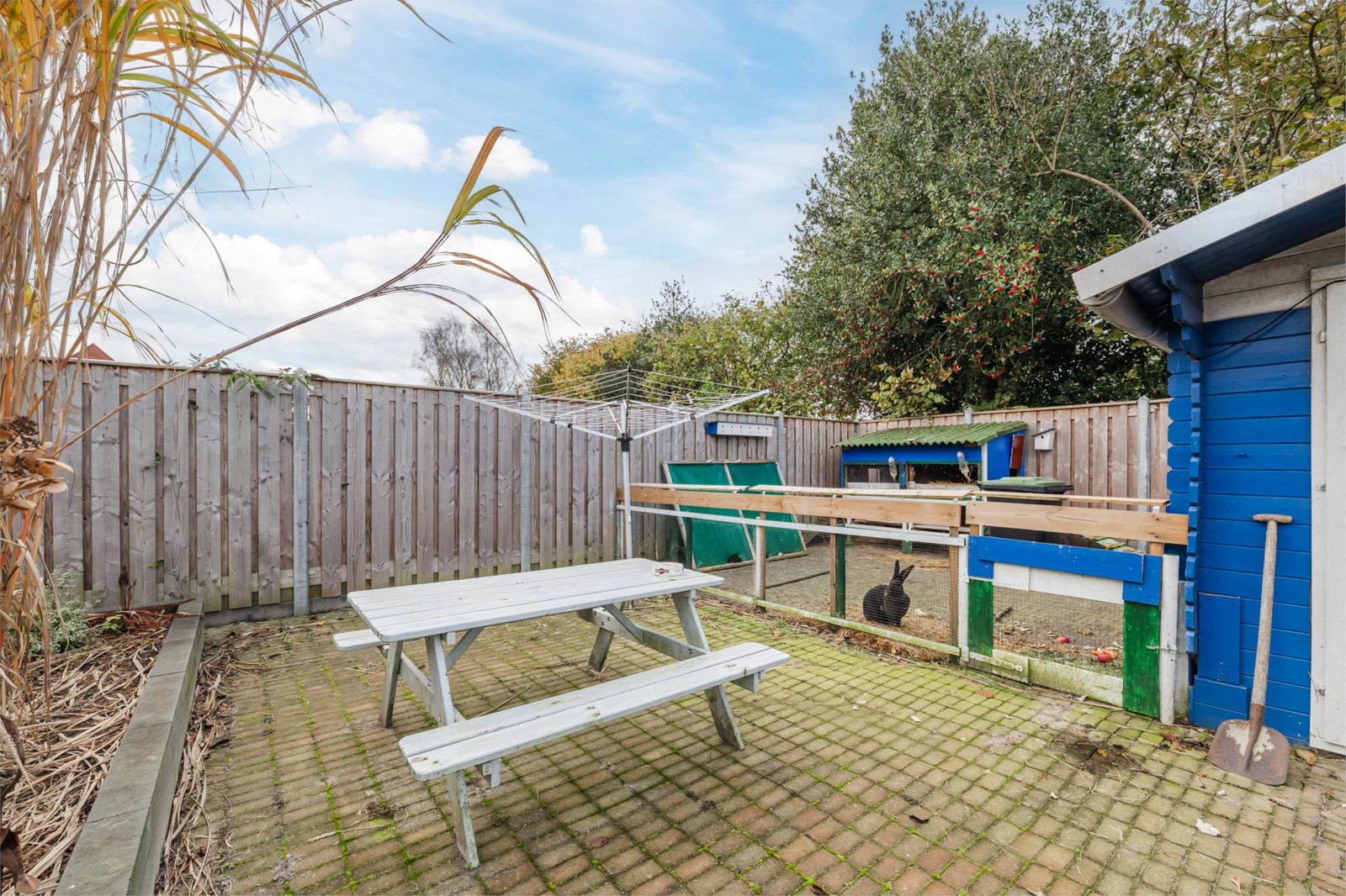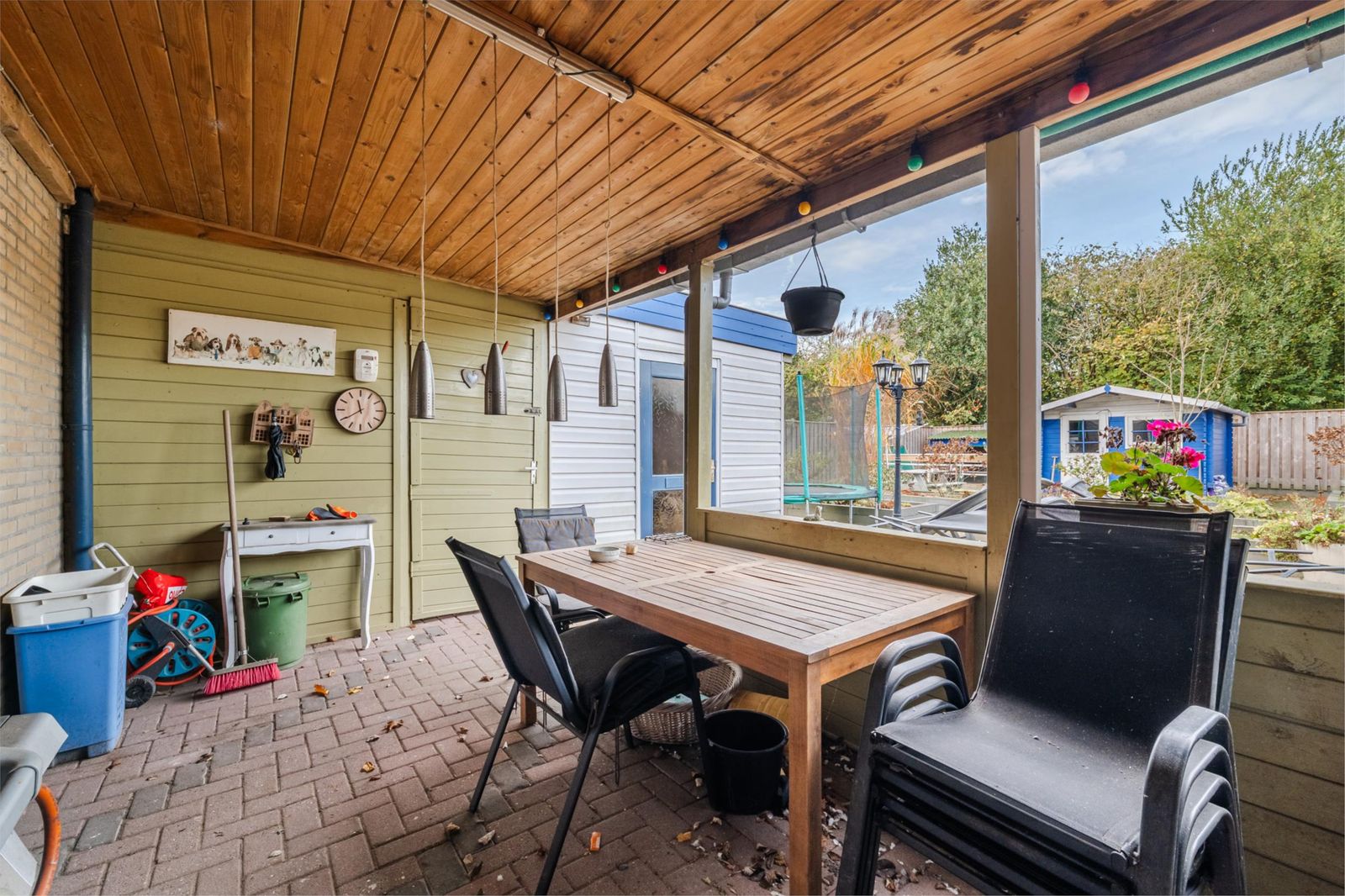 - Aangebouwde houten schuur en vrijstaande houten blokhut