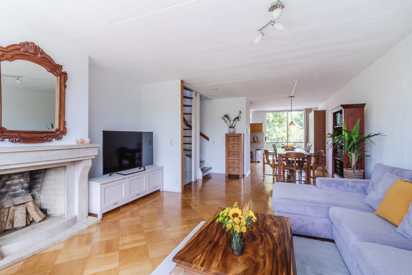 De woning kenmerkt zich door een speelse en uiterst praktische indeling, verdeeld over vier woonlagen: