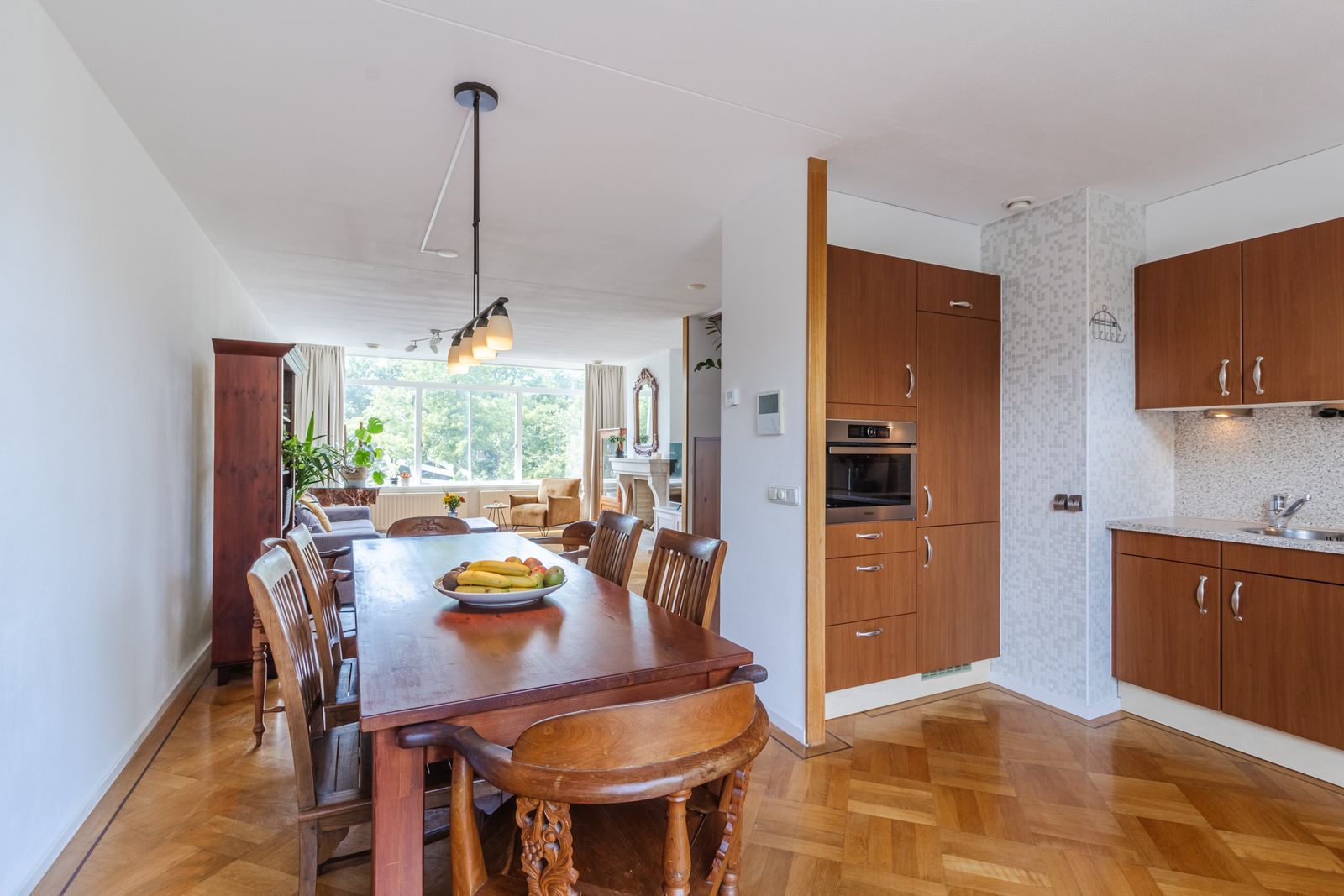 Op de eerste verdieping bevindt zich de royale woonkamer, waar de grote raampartijen en de fraaie houten vloer direct voor een warme sfeer zorgen. Aan de achterzijde geniet u van een vrij uitzicht over het water. De open keuken aan de voorzijde is van alle gemakken voorzien (vaatwasser, keramische kookplaat, combi-oven, koel- en vrieskast) en grenst aan een heerlijk ruim bemeten balkon. Hier geniet u in alle rust van uw eerste kop koffie in de ochtendzon.